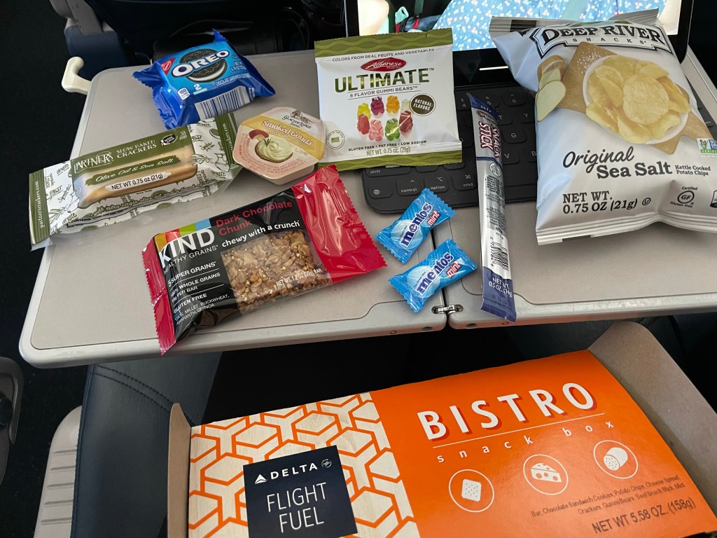 I booked the flight before France had officially announced they were reopening to tourists so I was able to score a ridiculously good deal on round trip first class tickets, with only one layover each way, and respectable layover lengths at that. The deal was so good that when I looked at the flight again a couple weeks ago, just to see what current fares were, it had increased by about $4,500. I never fly Delta so I wasn’t sure what I was in store for, especially with all the COVID adaptations. The first leg of my flight departed Sacramento on time and, gasp, I got to have my first alcoholic beverage on an airplane in about 18 months! That first glass of bubbly and pulling up the flight tracker on the screen before me helped quell my nerves; the flight tracker always relaxes me into the thrill of an adventure. Instead of serving lunch, they provided a “Bistro Snack Box.” At first glance I was certain it would make me feel icky with it’s kettle chips, kind bar, Oreos, smoked Gouda spread, crackers, beef stick, and gummy bears. But alas, the portions were perfectly sized, the ingredients and nutrition facts weren’t bad at all, and it turned out to be a delightfully eclectic little meal. Quite frankly, the salty, but not greasy, kettle chips and the meat stick were a fabulous pairing. Between a couple glasses of bubbles, the snack box, some Married at First Sight on my iPad, chit chat with the lady next to me (I really wanted to pry into her line of work as a hypnotherapist!), and a little nap the flight was over before I knew it.