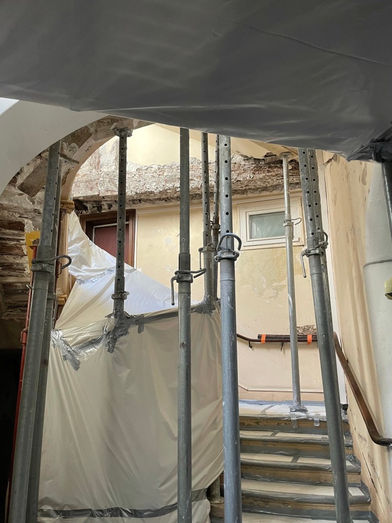 Well, my code worked, and I was glad he waited because for a split second I almost turned right back around and asked him to take me to a hotel. But I sucked it up, thought of all the good reviews I had read on AirBnB, and waved him away. The sight that met me when I stepped inside included crumbling plaster, supports holding up part of the staircase, and the spiral staircase all covered in construction protection. Did I mention that there is no elevator? My host had instructed me that the apartment was on the 4th floor with a white door and they keys hidden in a box. I’m not sure where this guy learned how to count but it’s on the 6th floor, which matters when you are carrying all your luggage, on a crumbling spiraling staircase with the bannister falling off. Later, I translated the note I saw in lobby and learned that they were doing lead removal work. Awesome. A tiring 100 steep and curvy steps later, I found the key hidden in the wall and, after a struggle with the lock, made it into my apartment for the week.