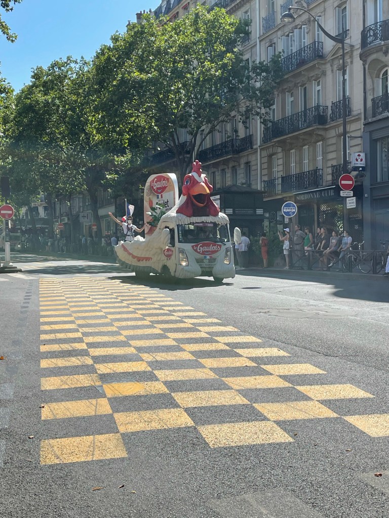 Leaving there, I headed towards the Pantheon, my only other scheduled event for the day. The large boulevard my route took me down was blocked off from cars and the sides were lined with spectators. No signage or anything hinted at the purpose. Finally I worked up the nerve to approach a young family and ask, “Parlez-vous anglaise?” And “Oui!” Jackpot! I asked them what was happening and through some rough communication figured out it was a parade of sorts showcasing the sponsors of the Tour de France. “It’s very French” the husband told me. Still confused but at least having some idea I kept on walking and within moments, sure enough, streams of cars showcasing random products came rushing down the street, blaring their horns and music, and swerving all over. People crowded onto the curbs as though it were the Disneyland light parade (does that still exist – I feel like it might not).