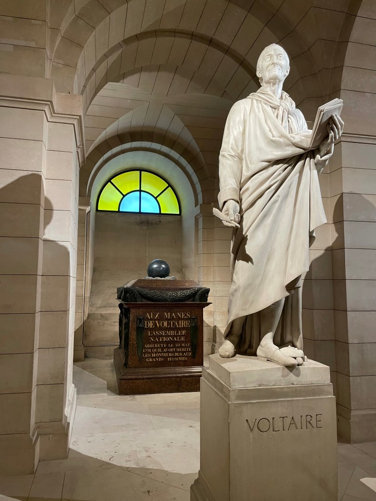 Searching for the restroom before I left, I stumbled upon the crown jewel of the Pantheon, what makes it special. The crypts! Yes, the crypt in the lower level of the Pantheon holds the remains of some of the greatest minds including Voltaire, Victor Hugo, Marie Curie, Jean-Jacques Rousseau, and many others. I do love old cemeteries and I love great minds so now my interest was peaked. I slowly made my way through the chilling underground chambers, being reminded of these greats and visiting their final resting places.