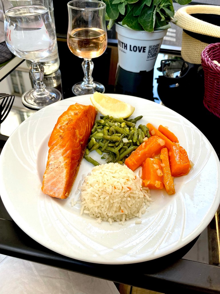 I ended up sitting down for dinner at Aux Anysetiers Du Roy – a small restaurant just a few doors down from my apartment. They have not opened their indoor dining but have a little patio area set up on the quiet street. “Madame” sat me at a table next to a couple older ladies who I immediately realized were speaking English! I think she did this on purpose as I immediately apologized, at least in French, for my lack of French-speaking ability when I asked for a table. I had a delightful dinner, chatting with the ladies the entire time. They are in their 70s and sisters. We talked about all the traveling they’ve done together and how they make it work to spend so much time together (they refuse to share a hotel room!) and their tips, tricks, recommendations, and experiences in Paris. They told me of some self-guided walking tour routes they had done and would recommend and pulled out their guide book so I could snap pictures of their routes. They filled me in on etiquette (they’ve been to Paris many times) on things like tipping and the fact that you always have to ask for your check because the French think it’s rude and like they are rushing you out if they just bring it to you. They turned out to be the perfect dinner company. They told me how cool it was that on Sundays locals of all creed and stature congregate in the sculpture garden and dance. I didn’t even know there was a sculpture garden! I enjoyed my time and sat there for close to two hours chatting with Ann and her sister (I missed sister’s name, oops!). And the food was fantastic as well. A green salad to start with a salmon entree and glass of rosé. It wasn’t fancy but the food was perfect. She must have cooked these carrots in pure butter.