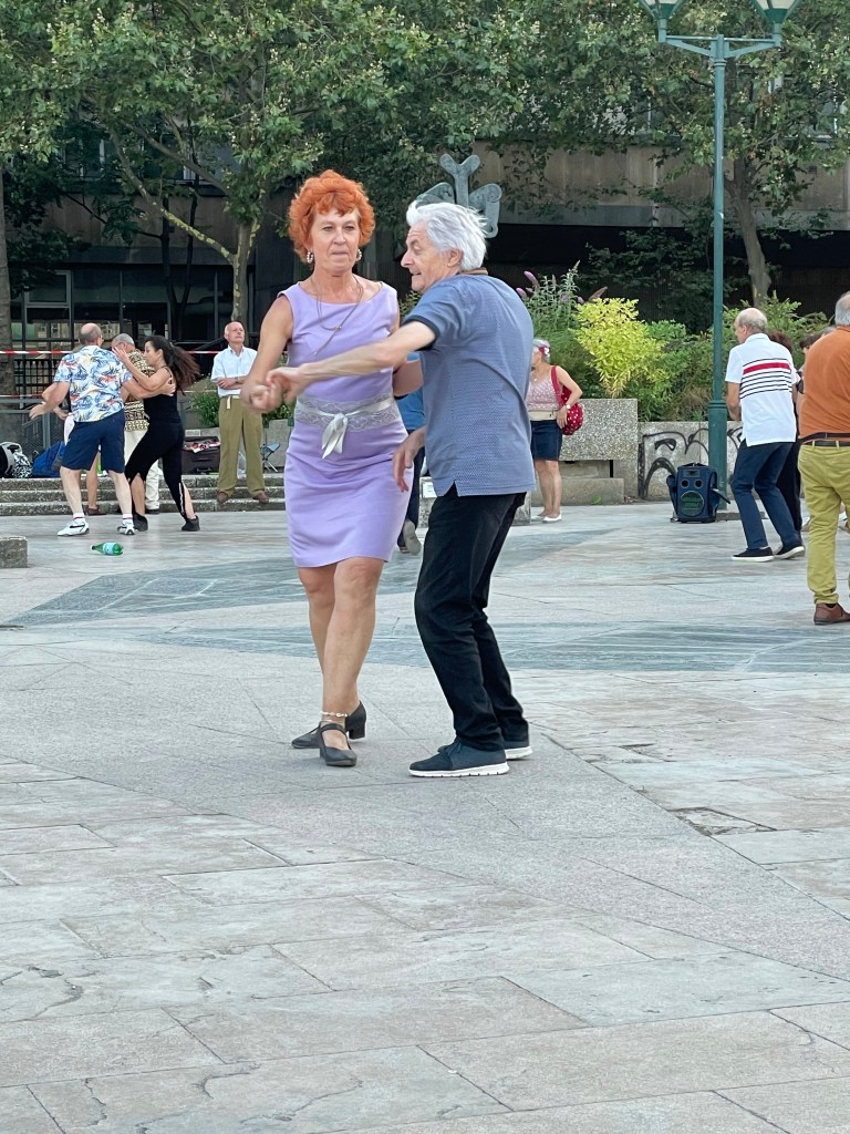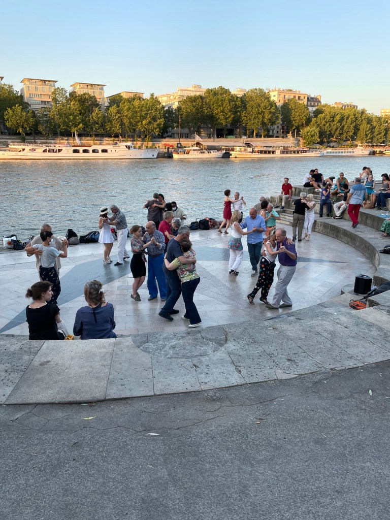 The sun doesn’t set here until about 10pm so I had plenty of time for an after dinner walk. The Sculpture Garden I learned of from Ann and sister is only about half a mile away so it was a perfect destination. I loved seeing families and friends all congregating along the banks of the Seine and in the Sculpture Park, eating snacks, drinking wine or beer, just relaxed and laughing. As far as sculptures go, from what I could find the “sculpture” part of the sculpture garden was lacking. BUT, sure enough there was dancing! Every 30 yards or so I came across a different type of music, some live, some recorded, and eclectic groups of all shapes, sizes, colors, and ages, dancing to the style. There was a swing area, a tango area, a salsa area, you get the point. To the side of some of the areas there were instructors walking around and giving little lessons. I wished Brandon was with me so I could try to get him to give in to a lesson with me!