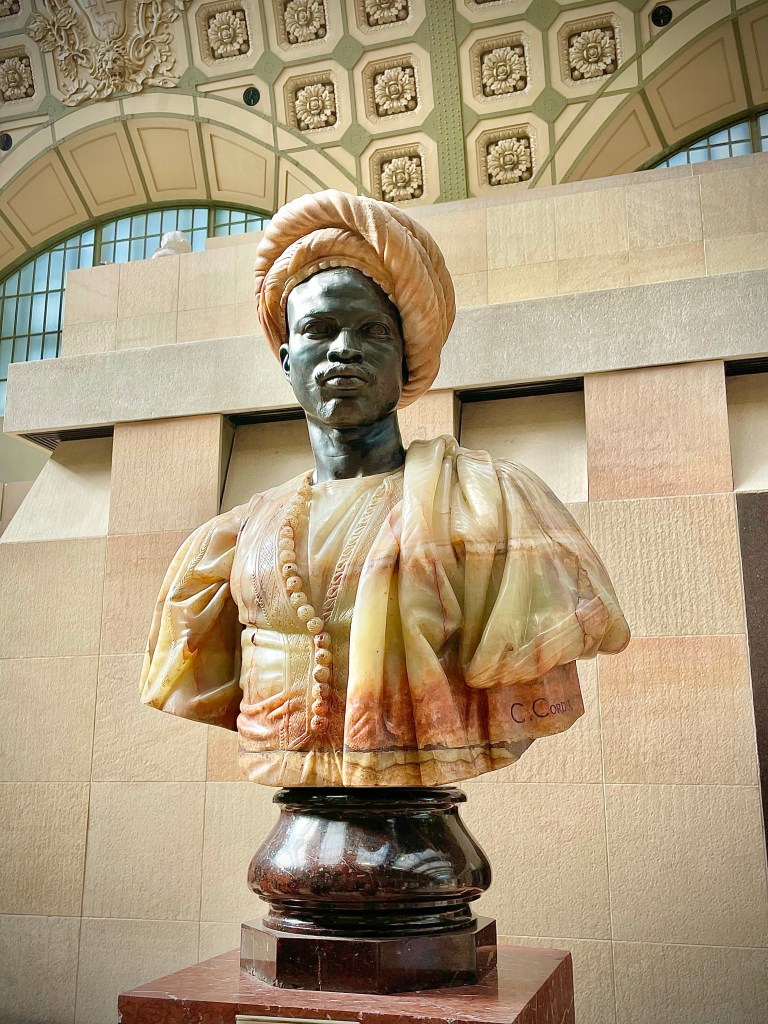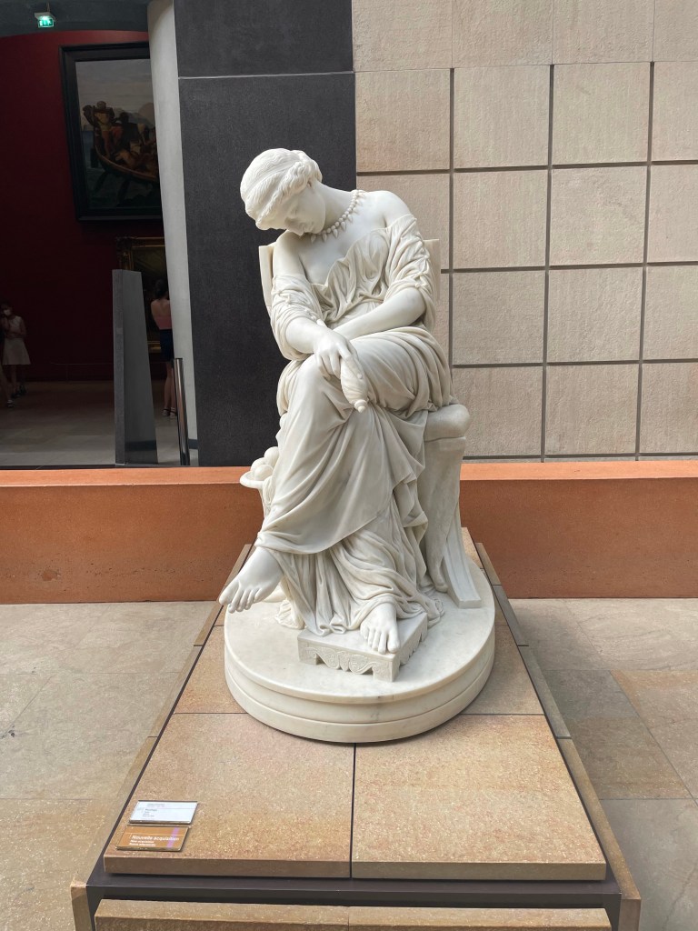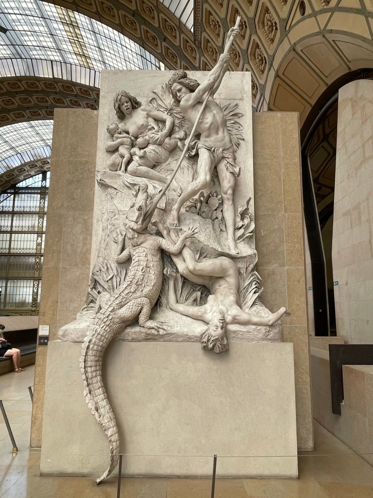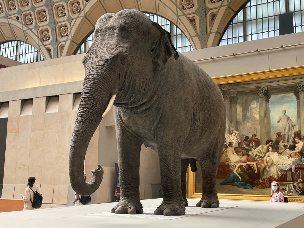 Immediately I liked Musee D’Orsay more than the Louvre. It was way less of a hassle to get in and way less of an insane maze. The first bust to greet me as I entered the hall of statues at the base of the entrance steps had a definite Disneyland Haunted Mansion vibe going for it. I kept waiting for it to become animated. A sleeping woman statue felt all too relatable, I was envious of her nap. A Pan feeding tiger cubs again took me to back to wondering what hallucinogenics these artists had. A bronze and onyx bust of a man from Sudan had such lifelike features it felt like his eyes followed as I walked past. But know what I wasn’t expecting to see? A taxidermy elephant. After being seized from the menagerie of the Price of Orange (after he had her captured in the late 18th century and brought to the Netherlands) by the French Army during the French revolutionary wars she, and her mate Hans, endured a 22 month journey by road, canal, sea, and finally the River Seine to a menagerie in Paris designed for the study and preservation of animals. While Hans only survived four years in captivity, she made it 18 before joining the Museum of Natural History in her taxidermied state. And now somehow ending up on loan at D’Orsay. Classic arts go a long way in reinforcing how badly humans have failed animals.