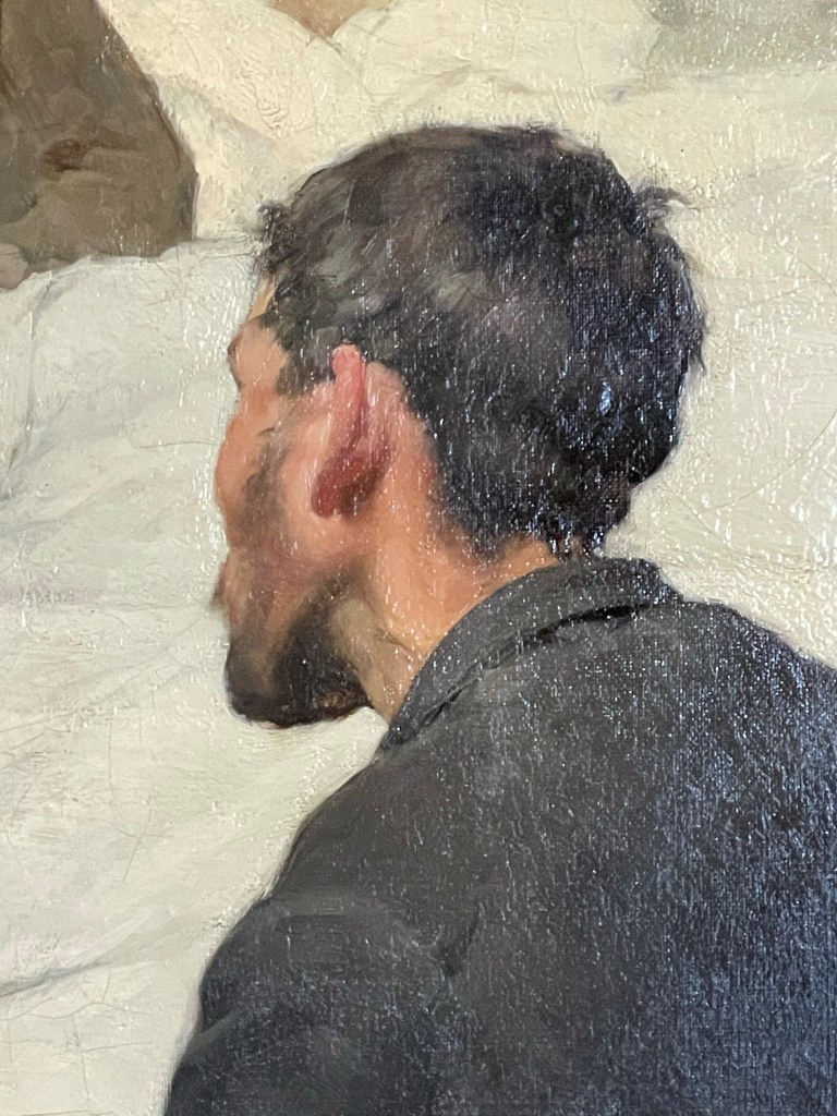 While it was less crowded, I found the crowds to be way more rude at D’Orsay than the Louvre, constantly pushing forward and standing in the way. This may have to do with so many of the more well known famous paintings residing there. I had never been familiar with Vilhelm Hammershoi in the past (not like I’ve ever studied art history) but I found his play on light to be simply incredible. While I’ve never been a Van Gogh fan, I was drawn to a piece of his that’s definitely my most admired of his works, “The Church in Auvers-sur-Oise, View of the Chevet.” And while it was cool to see his “Starry Night” painting, it wasn’t overly exciting. Until I was walking back after dinner tonight and watching the reflections of the lights on the Seine and able to understand the magic he saw in the scene he chose to depict. And then there was Jean Geoffroy’s “Le Jour de la Visite a l’Hopital.” The incredible juxtaposition of the father at the forefront against the paled scene he was facing, combined with the immense detail, left an eery feeling like he could get up and walk right out of the painting.