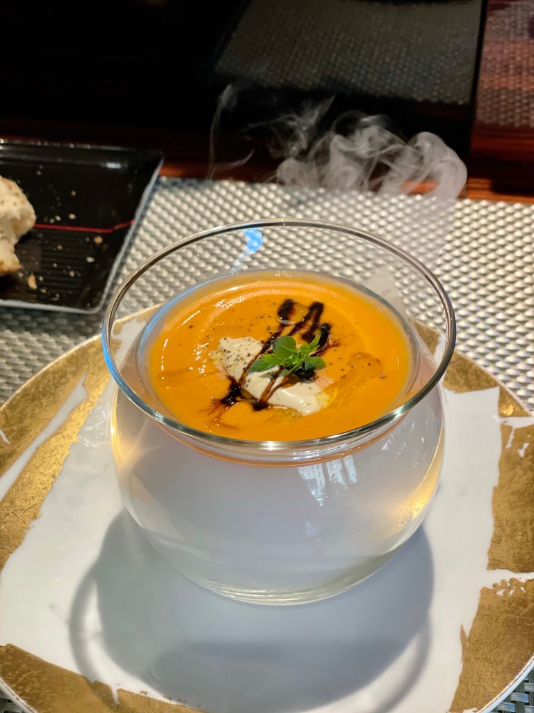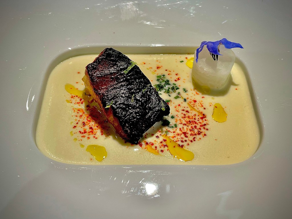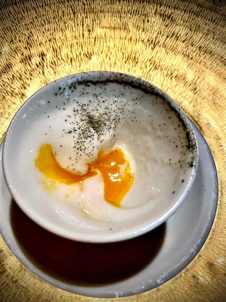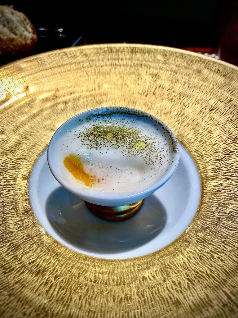I’m going to go all in here and say that straight up, the Amuse-Bouche was one of the most delicious things I have ever eaten in my entire life. As he sat the little cup of white foam in front of me the waiter explained that it was a melon gazpacho with a fresh mint foam. The first bite and I could not help myself but exclaim out loud how amazing it was. I have never in my life had a dish with the salt so perfectly balanced to highlight and accentuate the flavors. Everything about this amuse including the texture, temperature, balance, flavor, just everything was sheer perfection. And they made it look like a soft boiled egg!!! The melon gazpacho somehow had the texture of a six-minute yolk. Slowly and deliberately it oozed into the foam with each bite. I cannot rave enough this little mint melon wonder.