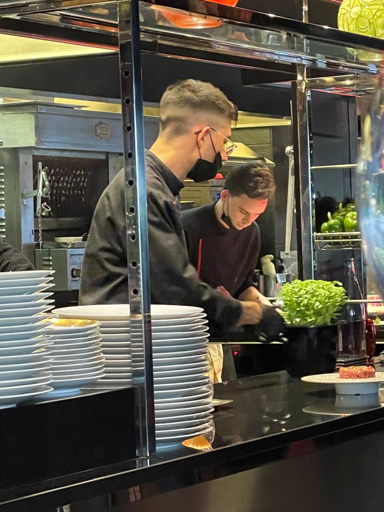 I went all in with the nine course chef’s Discovery Menu. Though I had really wanted to try the tartare and that was not included I figured I should get over it and this was the way to go. At the counter seating they left a seat open between each group which meant it was really nice to have elbow room on either side of me and not feel crowded. Can we keep COVID spacing everywhere forever please? From my seat I had a view into the kitchen so I could watch the dance of the chefs preparing the delicacies of the evening. Bear with me now, because this nine-course meal deserves a decent amount of attention.