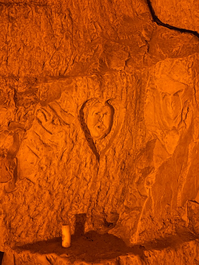 The host was going to ignore some of the most fascinating parts of the cave until I inquired about what I was seeing. Throughout the caves there were carvings of all sorts in the walls faces, shapes, very random. Apparently these are carvings that solders made during the First World War. They would hang out in the caves to rest and carve into the chalk walls to entertain themselves. Some soldiers even carved their names into the cool rock. They really shouldn’t glaze over that history so much because it’s actually pretty cool.