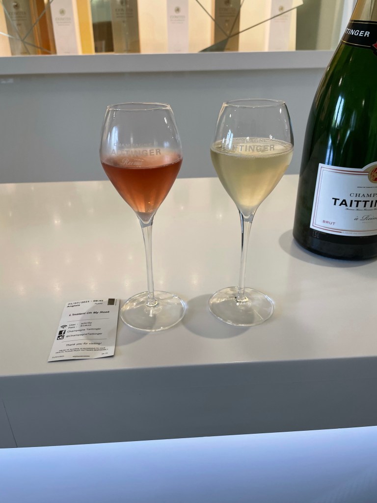 I hailed a cab outside of Gare de Reims and made it to Taittinger by 9:30, just on time since they requested that patrons arrive 10-15 minutes before their tour to get checked in. I was STARVING. That PB&J for breakfast was small and not going to do it. I thought I had a piece of caramel in my purse from the end of my dinner last night but alas, that wasn’t even in there. Perhaps I should have ate more before going to drink champagne but it was too late to do anything about it now. My overnight bag was a little cumbersome and though they had no coat check the lady the reception was kind enough to offer to let me leave it up there with her. I joked that I just had to remember it before I left.