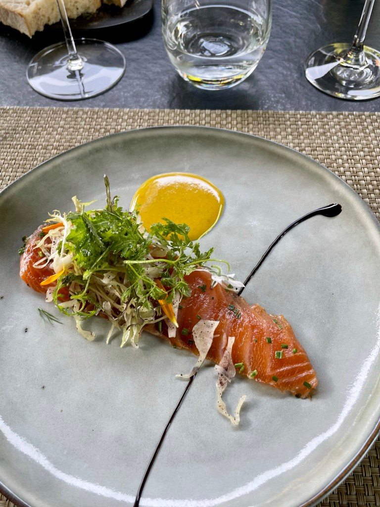 Surprisingly, even on an empty stomach, I barely even felt a buzz. As I finished my time at Taittinger and walked out towards my lunch destination one of the other hosts chased me down, “Your bag madame!” Oh yeah, that overnight bag. Oops!