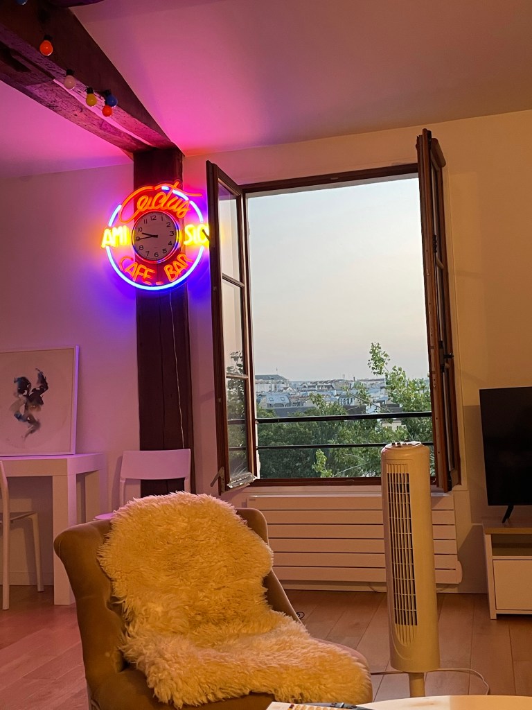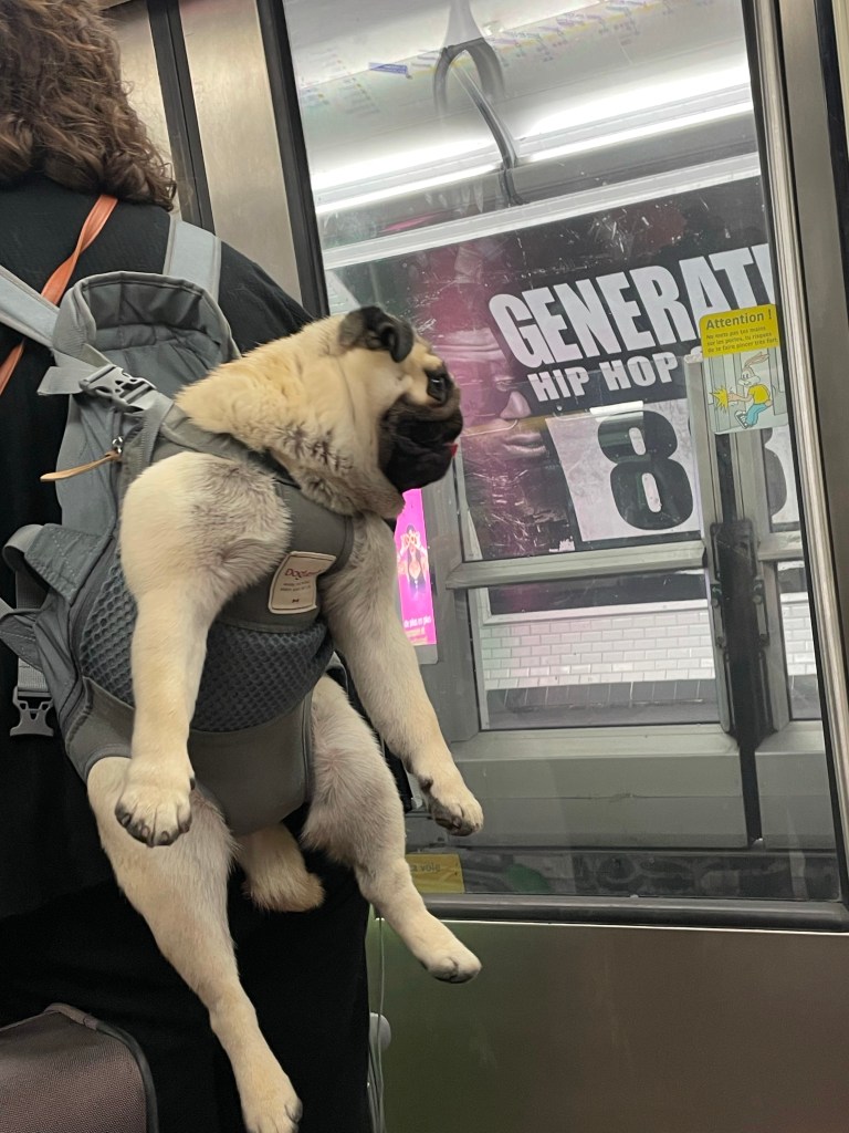 After resting in the apartment for a bit I did some more random exploring around the Vendome and another major shopping/fashion hub, Les Galeries de Lafayette. Outside on the hot street I discovered that they had mister fountains, a water fountain with a tall attachment that would mist you from above at the press of a button. A gentleman stood beneath misting himself and his Pomeranian. There are a lot of Pomeranians in this city! I took the Metro part of the way (cut me some slack, my feet hurt, I’m averaging about 25,000 steps a day!) and to my delight I was met by a woman carrying a pug in a baby carrier on her back when the Metro doors opened and I stepped in. I couldn’t help but pull out my camera to try to discreetly snap a picture. A woman, about my age, sitting across from me caught me. She winked and nodded and I could feel her smile through her mask. It felt like the most sincere human connection I’ve had in a couple days where with no words we obviously shared the same amusement. (Metro pro tip – always check the first stop after you get on and compare it to the map on the wall to make sure you are going in the right direction before you go too far! I have yet to make such a gaffe thankfully but always am watching the location.)