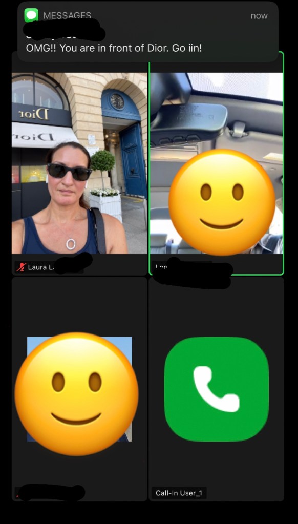 I did a little shopping but didn’t buy anything as I need to go back with my passport in hand so I can have my purchases processed as duty-free, heck yah I want that 10% VAT back! I tucked myself into the quietest corner I cound find, in front of Dior and Valentino at the Vendome so I could call home and chat with Brandon for a while and then, well, actually get on a Zoom board meeting for work. Not my own board but another very important meeting I needed to attend as the outcome affected my organization. One of my colleagues noticed where I was and sent me some shopping encouragement during the meeting. What she couldn’t see was the clothing and accessory trunks the fashion houses were bringing out and loading into a waiting van! The Board Meeting was quick and went well (exciting work things happening when I get home) and then I was off for a little more browsing.