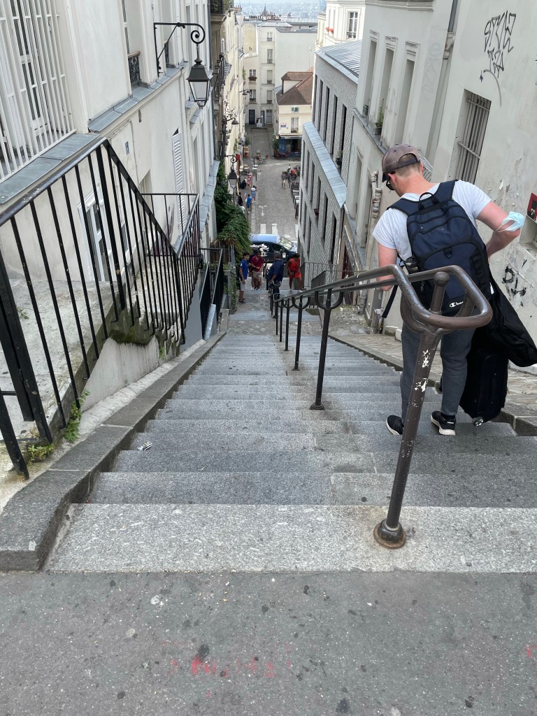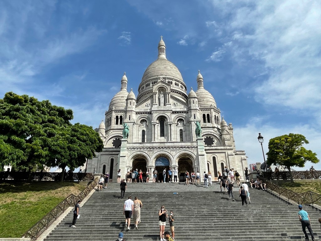 However, there was a Starbucks across the street and an iced tea sounded good so that helped me feel better. And they had a bathroom which is always an exciting find. I sat down with my iced tea to figure out the route to Dali Paris, I really am a Dali fan, but alas, they don’t even open until 1pm. So that wasn’t going to happen. Ok then, off to see Sacre-Coeur, the basilica at the highest point in Paris. I don’t know why I didn’t think about the fact that this meant it would be an uphill adventure and I was more surprised than I should have been when the streets became hilly and steep staircases appeared in my way.