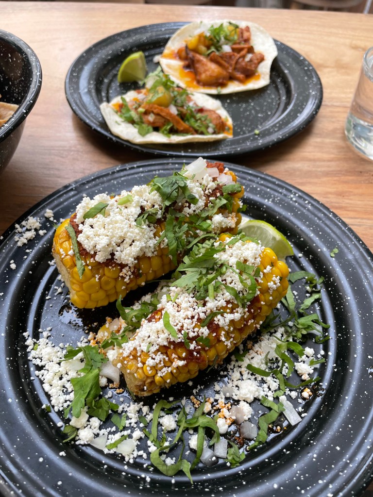 Leaving Sacre-Coeur I was right on time to make it to the next stop on my agenda, lunch at Candelaria, the first taqueria in Paris! Both my Paris foodie contact and a friend back home had recommended Candelaria so it had high priority on my list. In the Marais neighborhood, it is tucked away on a quiet side street. A group of selfish backpackers who weren’t even eating there but had gotten food at the restaurant next door was not just using their dining space and taking up four seats, but also six others with all their crap that they had piled in to the small area. I hate people sometimes. With their indoor dining space closed these four people were taking up over half the available seating. Seeing me looking for a place to sit the mistress of the taqueria asked if they would move their bags and thankfully they were done anyways and left. My chips and guacamole and tacos al pastor (with pineapple!) were delicious and my elote was fine. I’ve had much bettrer elote but I also live in California!