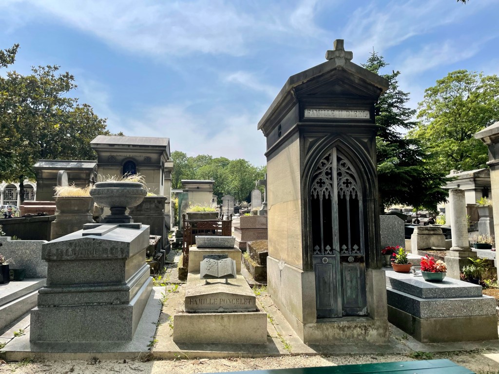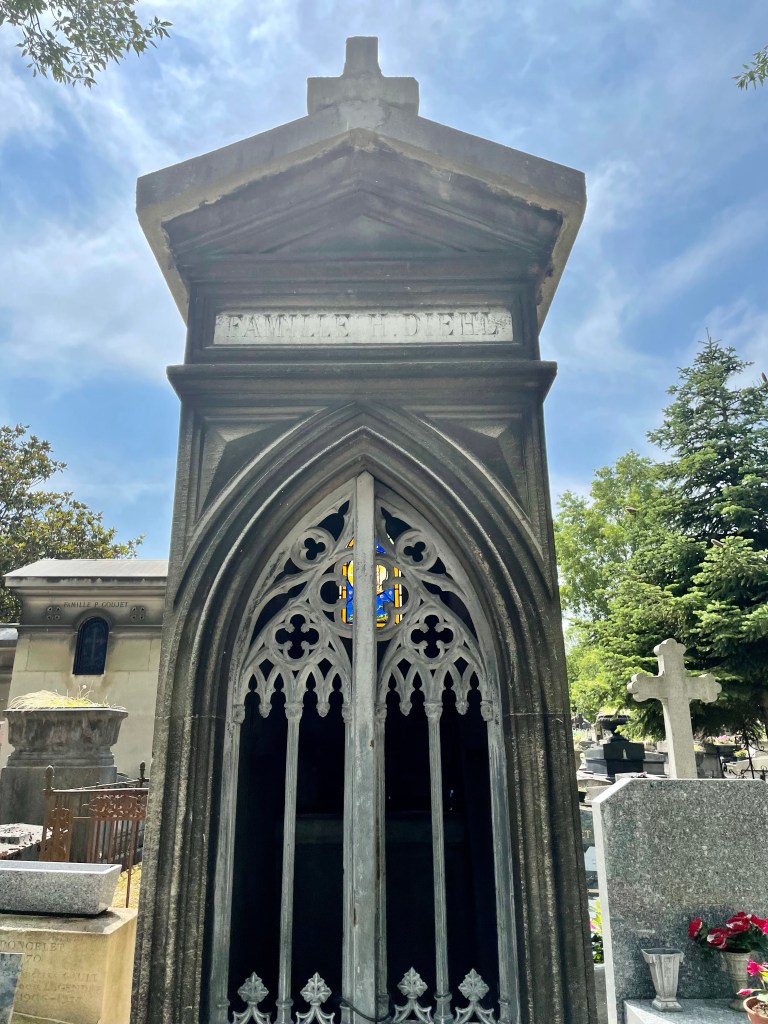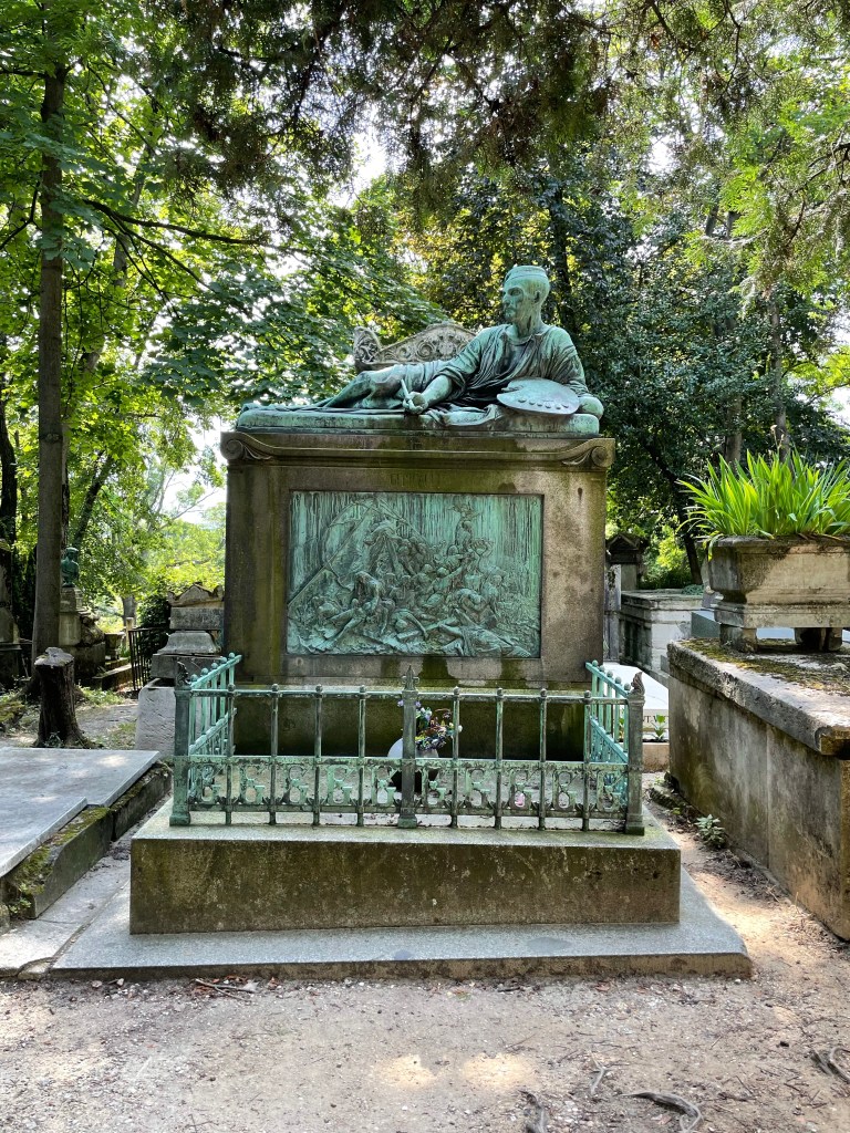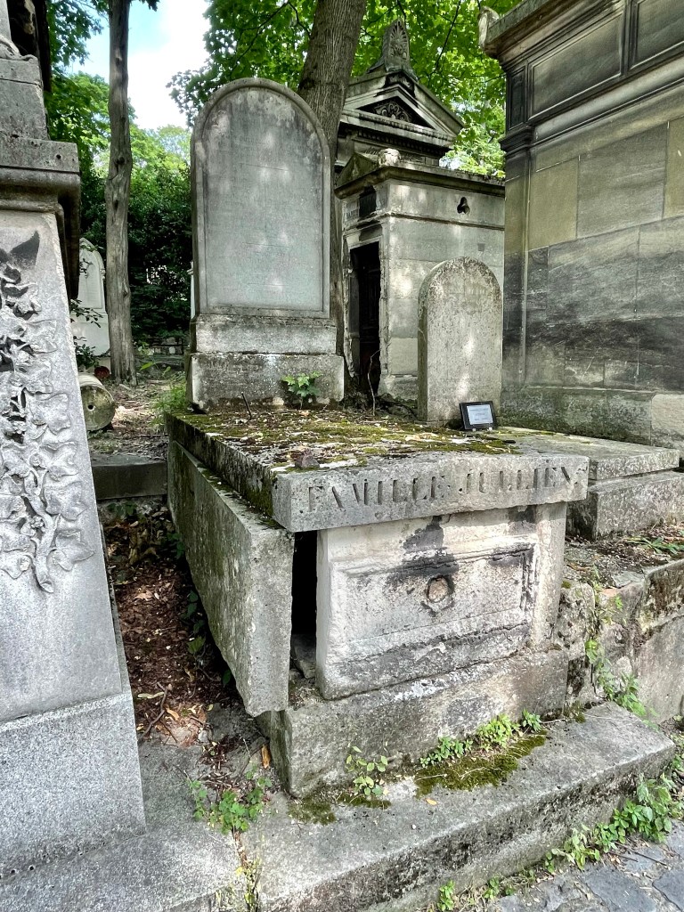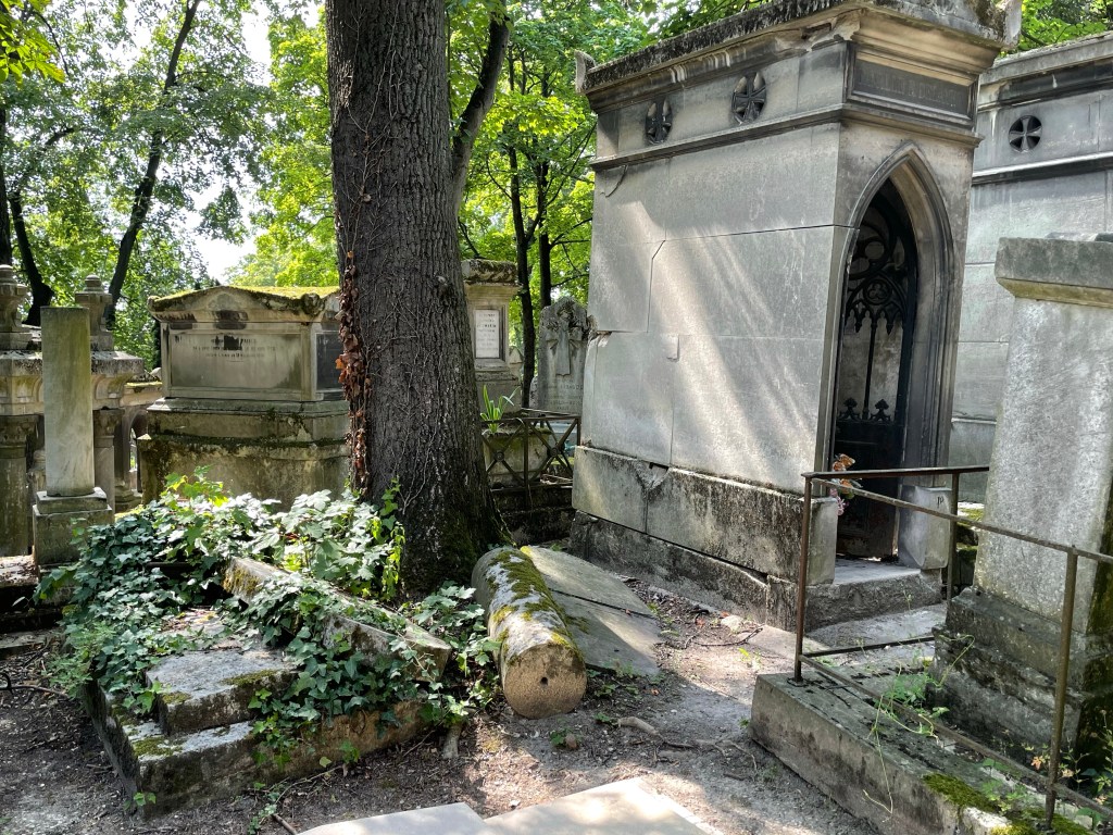 Benches surrounded a patch of grass and garden, a place to sit and reflect. I stopped there to look at the cemetery map, quite frankly I needed to find the bathroom. An old man with wild white hair turned his attention to me from the bench where he perched. I think he might have asked if I needed directions, I’m really not sure. I used my standard apology for my lack of French and he inquired; Italian or Spanish? Literally every single person to guess my heritage this trip has asked the same when I apologize for my broken French. Nobody, not a single person, has guessed American or English speaking. He apologized when I clarified, “Je parle anglaise, je suis Americaine,” covering his mouth with his hands embarrassed. He did not speak English but some how we communicated with what little French I could speak and understand. We had a lovely little conversion, each barely understanding the other, on the beauty and peace of this mystic location and the greats laid to rest within these walls. It seemed like an interesting place for an elder gentlemen to come to relax; was he sitting here contemplating his fate and needing human connection? My own soul was fulfilled that I had taken the time to stop and connect with this kind old man and his infectious smile. I would have stayed and chatted with him longer but I really needed to pee. I think I spent close to two hours in that sacred space and I could have spent longer but I had another stop to make and a COVID test to take.