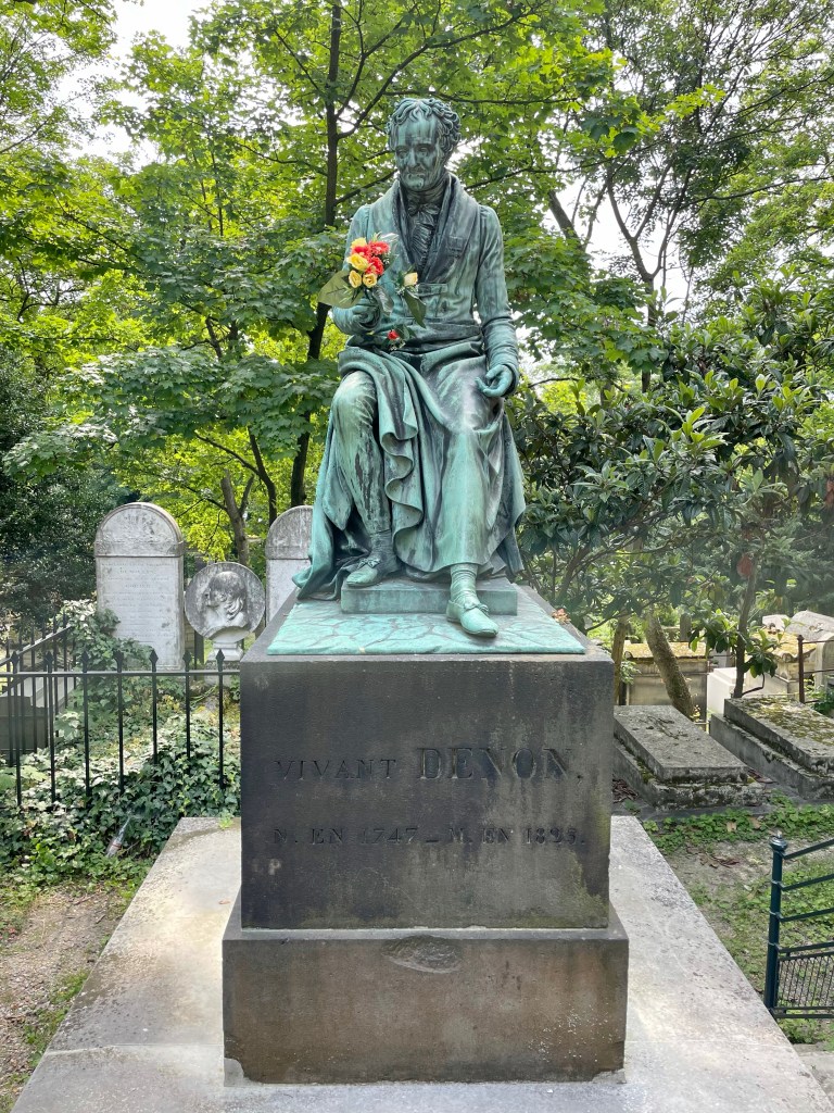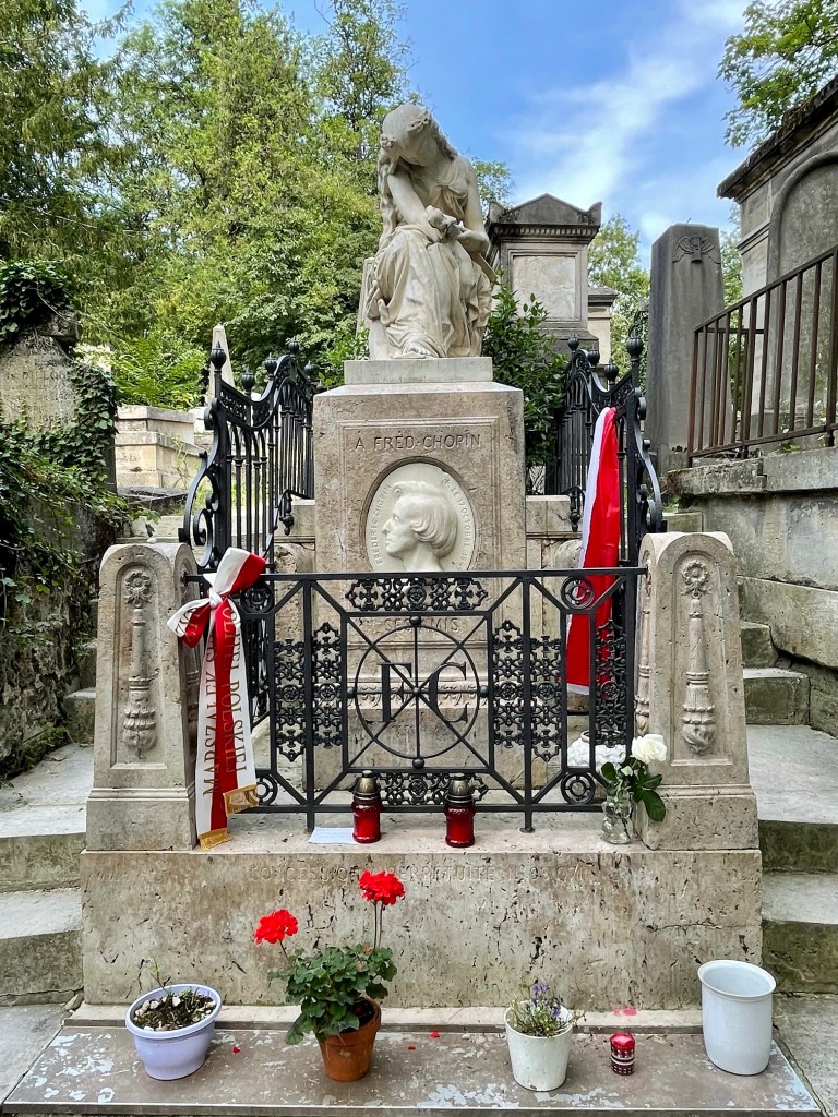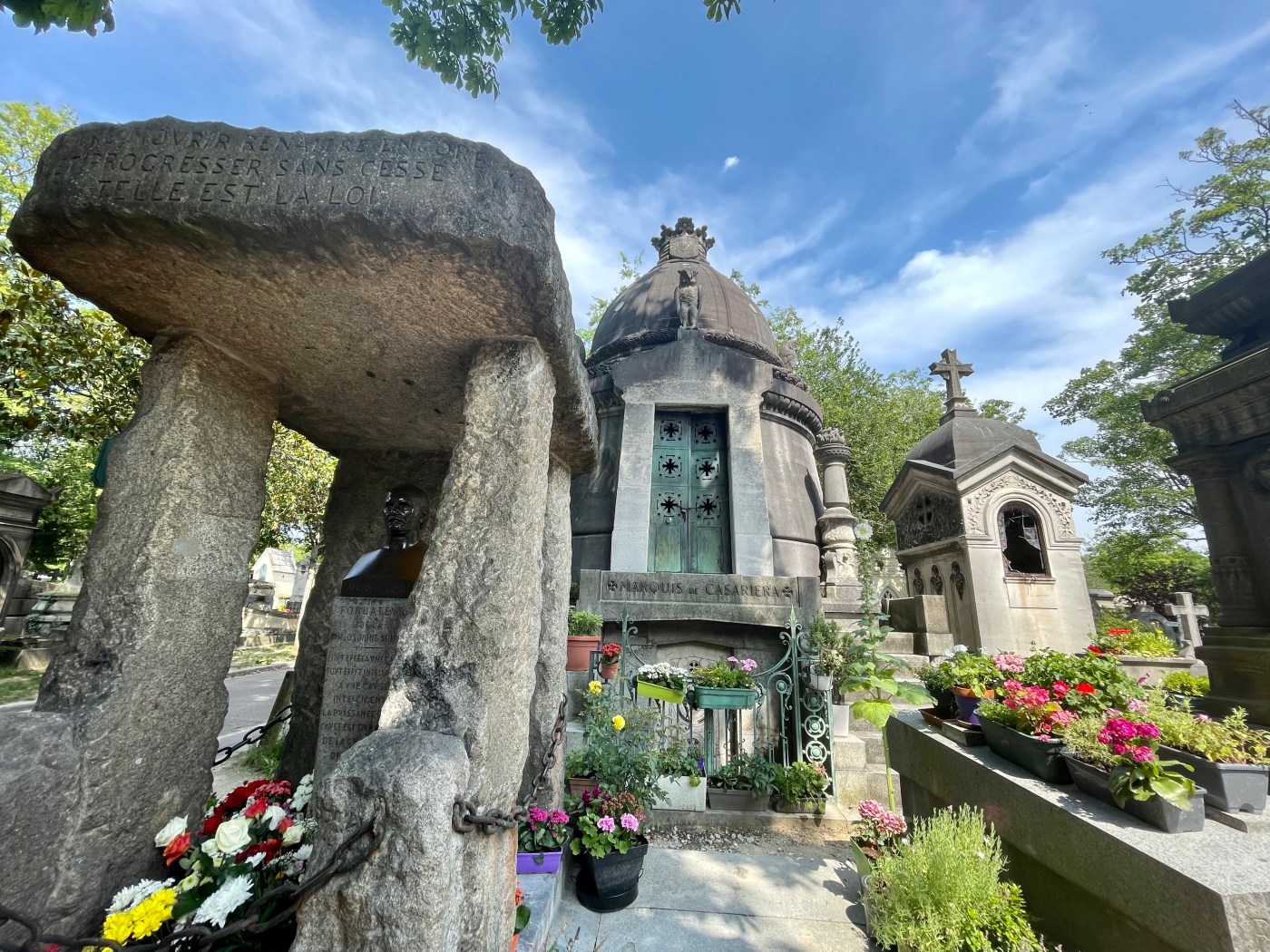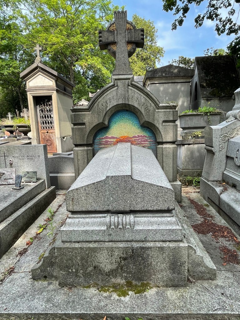 Benches surrounded a patch of grass and garden, a place to sit and reflect. I stopped there to look at the cemetery map, quite frankly I needed to find the bathroom. An old man with wild white hair turned his attention to me from the bench where he perched. I think he might have asked if I needed directions, I’m really not sure. I used my standard apology for my lack of French and he inquired; Italian or Spanish? Literally every single person to guess my heritage this trip has asked the same when I apologize for my broken French. Nobody, not a single person, has guessed American or English speaking. He apologized when I clarified, “Je parle anglaise, je suis Americaine,” covering his mouth with his hands embarrassed. He did not speak English but some how we communicated with what little French I could speak and understand. We had a lovely little conversion, each barely understanding the other, on the beauty and peace of this mystic location and the greats laid to rest within these walls. It seemed like an interesting place for an elder gentlemen to come to relax; was he sitting here contemplating his fate and needing human connection? My own soul was fulfilled that I had taken the time to stop and connect with this kind old man and his infectious smile. I would have stayed and chatted with him longer but I really needed to pee. I think I spent close to two hours in that sacred space and I could have spent longer but I had another stop to make and a COVID test to take.