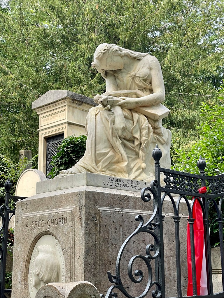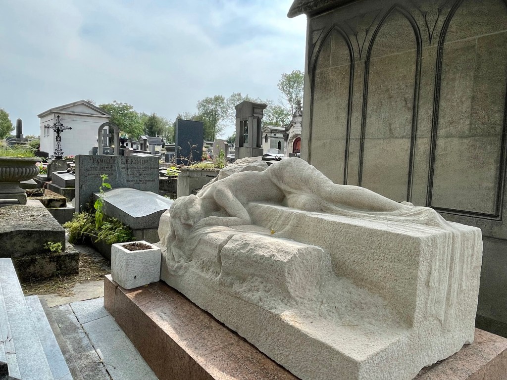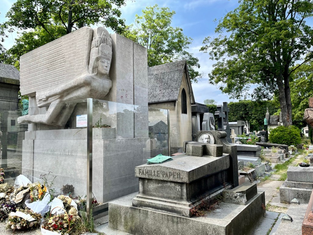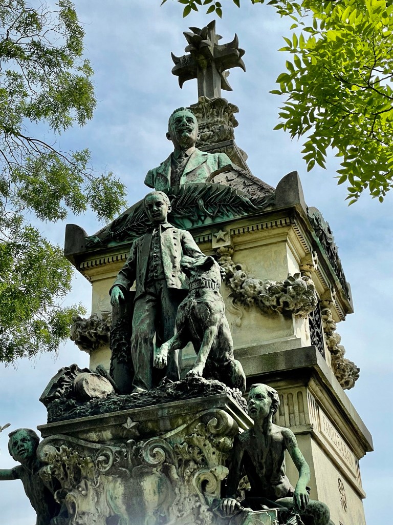 Now it was time to pay my respects to the likes of Oscar Wilde, Chopin, and Jim Morrison at the Cemeterie de Pere Lechaise. I was really looking forward to this stop as I do have an affinity for the beauty of cemeteries to begin with. And Pere Lechaise did not disappoint. I wandered in awe of the statuesque and chilling monuments to the souls laid to rest there. I only saw two sites of those passed in recent years with graves marked back to the mid-1800s. I had a special appreciation foe those whose dogs were included in their memorial.