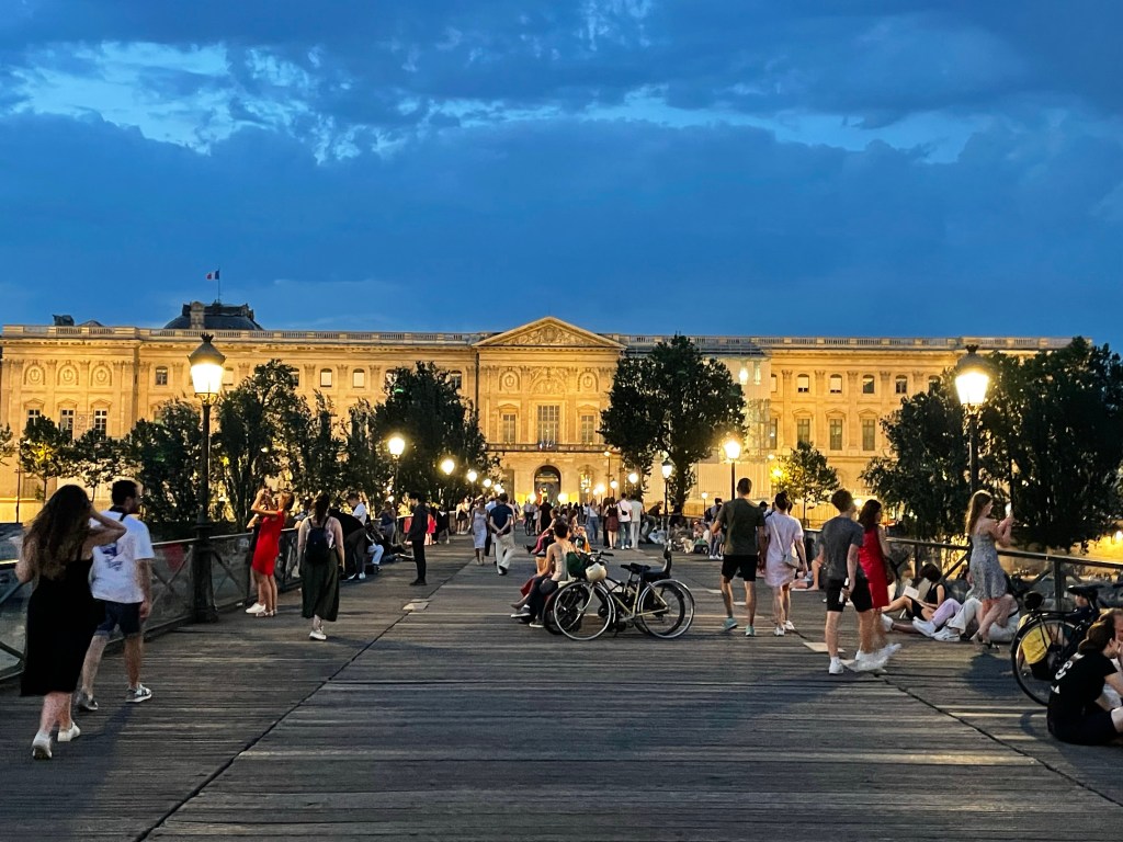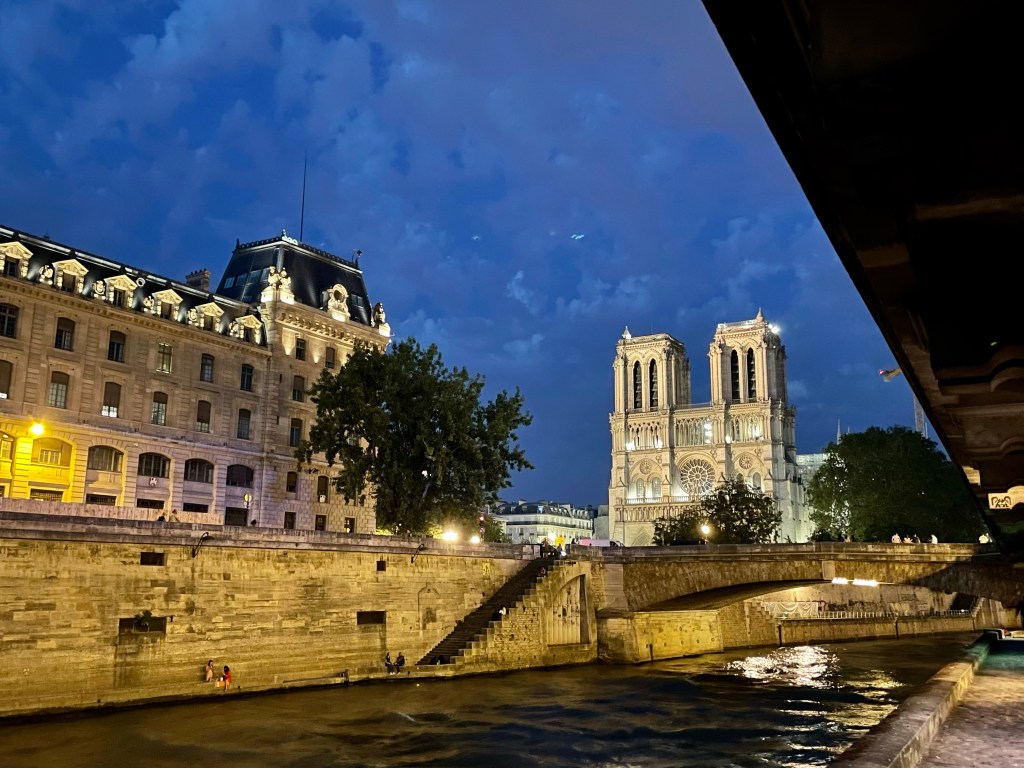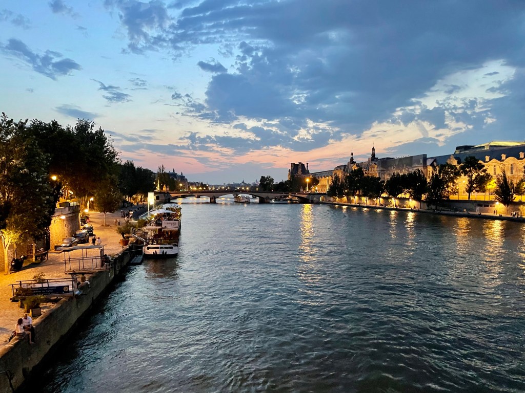 Staying in an AirBnB on the Île means that as long as I can find the Seine, I can easily find my way back. Tonight I took the steps down from the street level to walk along the stone river bank. The river is lined with house boats, some complete with gardens. In another I could see a large fish tank thru the window. The bright moon light made everything twinkle. Friends and couples sat along the edges drinking beer and wine. Even the rats ran across to join their mates. It was peaceful, except when the floating night clubs went passing by, and I finally felt some of the magic of Paris.