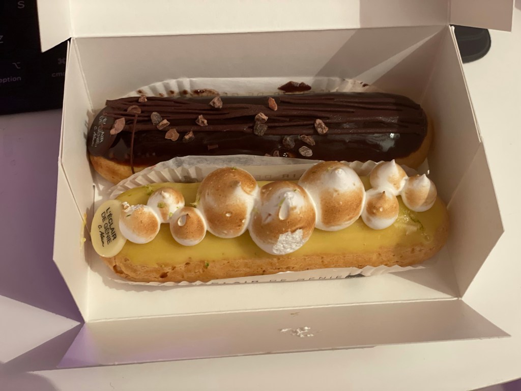Getting off the Metro back by my AirBnB I made a quick detour to l’Eclaire du Genie, supposedly the founder of eclairs in Paris. Picking up classic and yuzu meringue eclairs to go I had time to drop them off at the apartment. Arriving for my COVID test right on time at 6:30 sharp. I had timed this day perfectly.