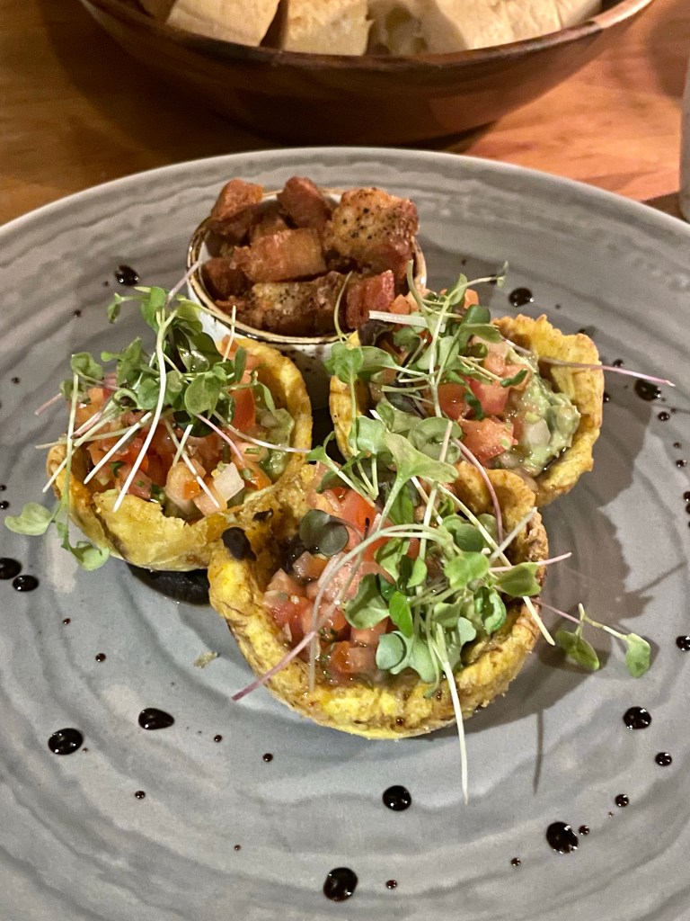 We quickly changed and went to the nicer restaurant on property, Tucanes, for our first proper meal of the day. Tabacon is known for their gastronomy program and they did not disappoint! My Morpho Tonic was beautiful, crisp, light, and scrumptious. We filled our bellies with patacones and chicharron, local trout, and ribs, Everything from the amuse bouche, to the bread and butter, to our appetizer, entrees, and cocktails were all a culinary delight. The chicharrones were unlike any pork I’ve had before, definitely not your gas station packaged chicharrones! They were perfectly crispy yet light and balanced. I want to eat those again.