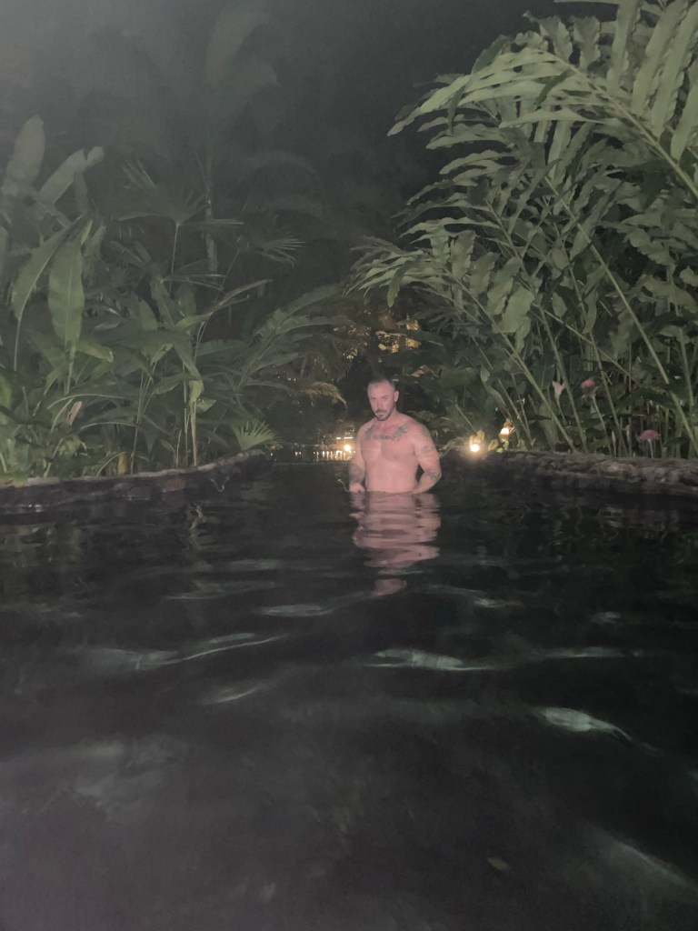 Our resort is known for their magnificent thermal hot springs so we rushed to change after dinner and go check them out before closing time. There were only a few other people there and we explored the best we could but in the dark it was confusing and hard to get our bearings. We did spend some time soaking in a warm spring before they closed and we are both eager and anxious to explore them in the daylight.