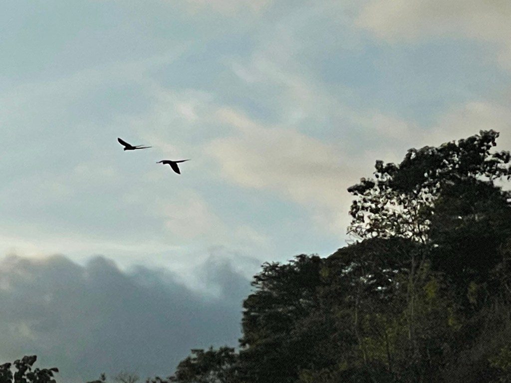 Passing by Refugio Nacional de Vida Silvestre Curu, the wildlife refuge, I squealed with delight as two macaws flew past and above us! With their bright red color and long tails they were immediately identifiable. My first wild macaw sighting! Perfectly in sync, the macaw couple stayed shoulder to shoulder as they flew.