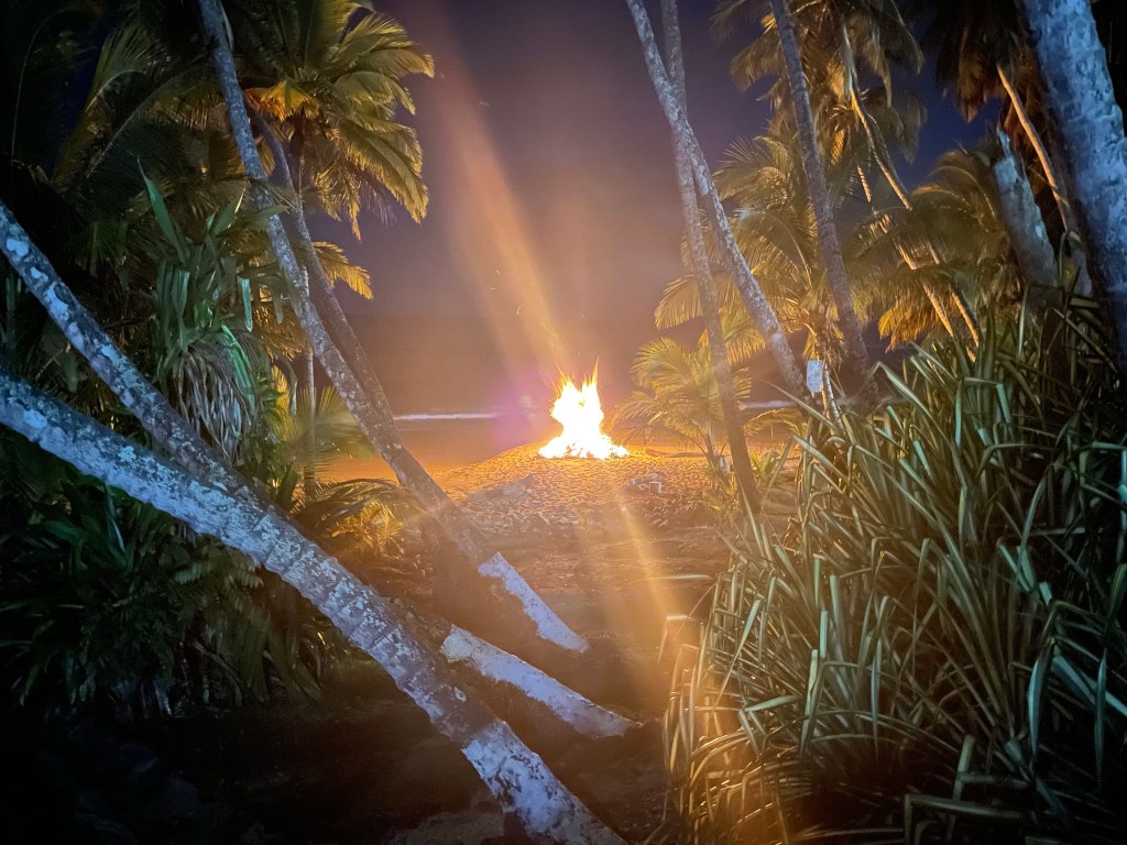 Sunset was quickly upon us when we returned to the resort and a stroll on the beach was in order to enjoy the beauty of the skies as the sun disappeared behind the hills on the other side of the peninsula. When we left for dinner, we found a huge bonfire blazing on the beach.