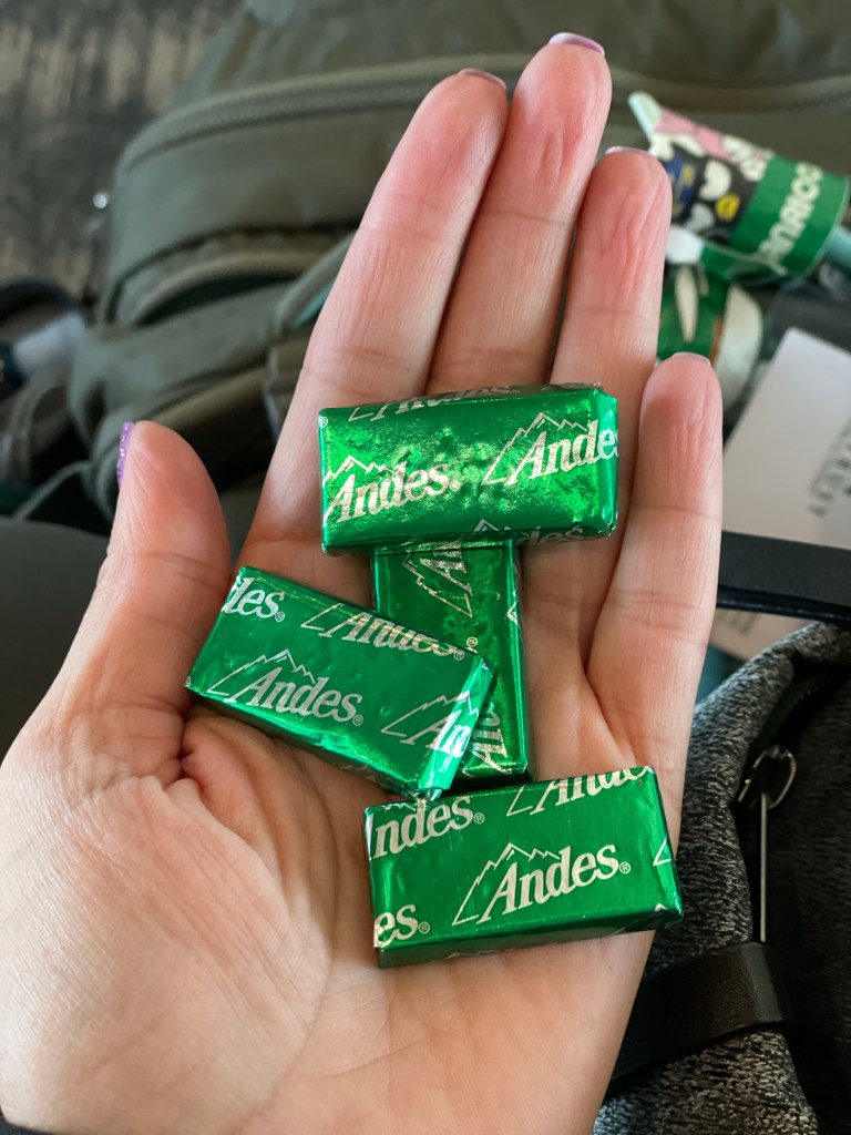 B dropped me off at SMF right at my goal time of 3:15pm. And alas, curb side check is open again!!! Within ten minutes of being dropped off I had checked my bag, made it through security, and was in the Escape Lounge with a glass of Prosecco and a FlightFud hydration drink mixed. Since I fly often for work, I frequent this lounge and some of the staff now recognizes me. On my way out, I made a comment to the front manager, Krista, that I was sad to see they didn’t have any Andes mints out today; one of my favorites. She expressed her remorse that the supplier didn’t have them in stock but more were on order. I made my usual stop at the restroom on my way to the gate and as I turned to enter a stall, Krista was behind me with a jar containing four Andes mints. She’d realized they had four left under the counter and literally chased me down through the airport to get me some Andes mints. One of the finest moments of customer service I have ever received.