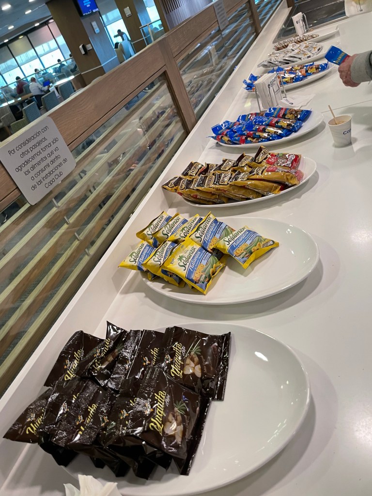 As soon as I deplaned in Panama City the first thing I saw was a large yellow Nathans hot dog stand. Also, not what I expected. But next to it was a Coffee Bean and Tea Leaf where this tea-drinker eagerly ordered an almond milk sugar free vanilla latte, in hopes of the caffeine combating my raging head. Caffeine in hand, I found the Copa Lounge and was, well, super under-impressed. It was nice to see a bottle filling station and have a comfortable seat with an outlet to charge my phone but all they had for food was some prepackaged snacks; cookies, pretzels, nothing the least bit appealing. I sat there in my minimal sleep headache exhaustion and savored my latte.