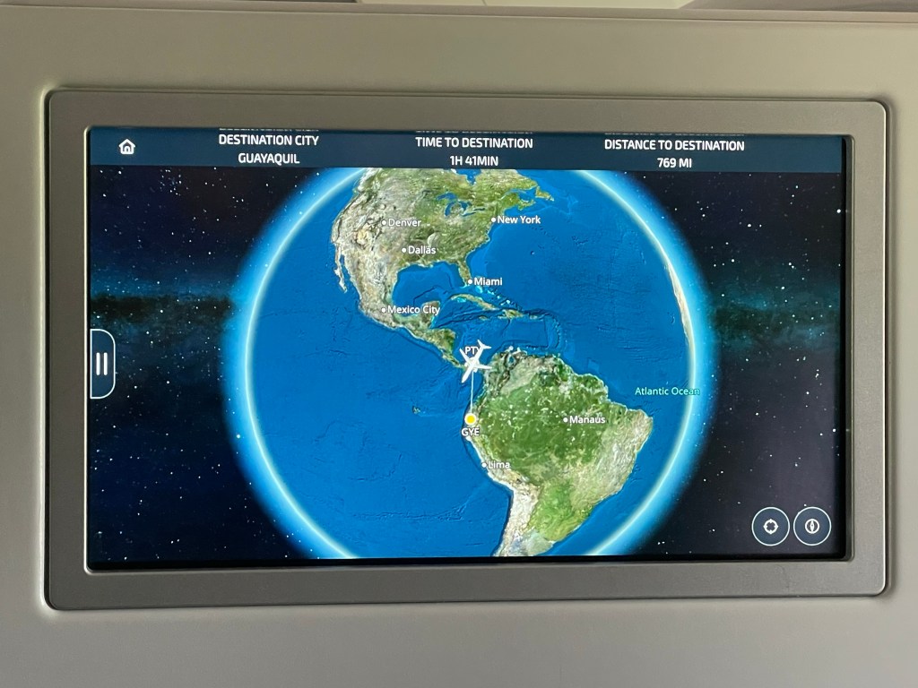 Boarding for my next flight, to Guayaquil, was just as smooth as the last flight. Though its another lay flat bed the flight is only 1 hr 40 min so not enough time to sleep; this will be a day fueled by caffeine instead. As the flight took off the business man next to me took pictures, not very good ones, of the canal for me. He also cautioned me about Guayaquil as robberies have seen an uptick since COVID struck. Stay in tourist areas and use Uber to get around. And speaking of COVID, where your mask. Ugh. Throughout Ecuador masks are still mandated any time your in public, even outside!