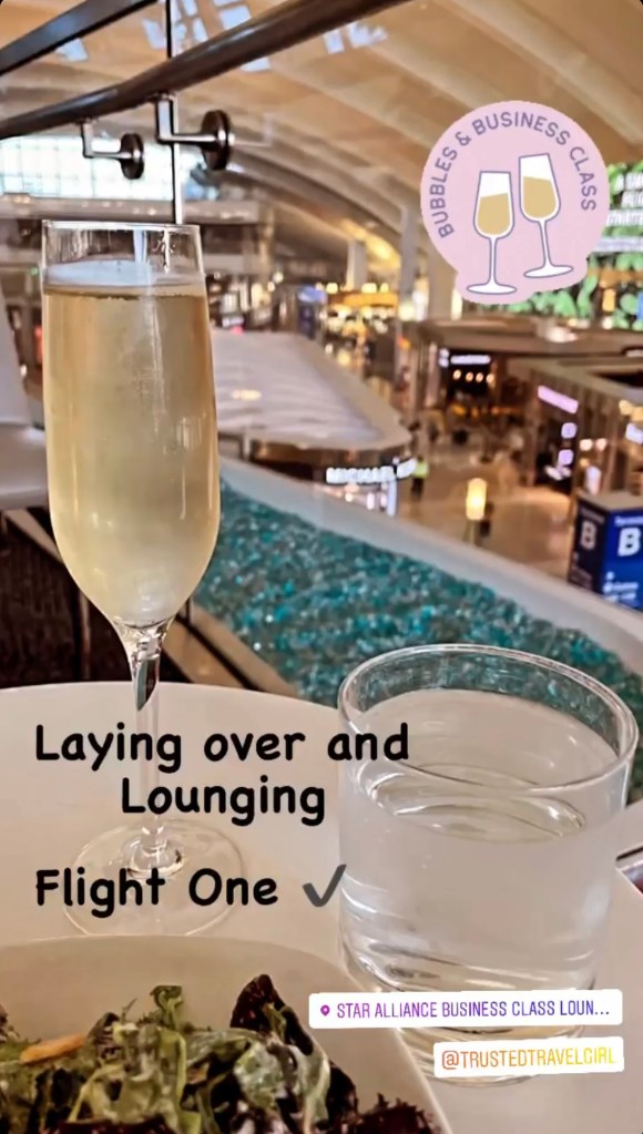 Next hurdle, security. It looked oddly mellow on regular security line side and when I walked across the terminal to the TSA Pre line I worried it was closed. NOBODY WAS THERE. NOBODY. Just some bored TSA agents. And that’s it, nobody else. I walked right through. By 6:40pm I was in the Star Alliance Lounge with a glass of champagne in hand.