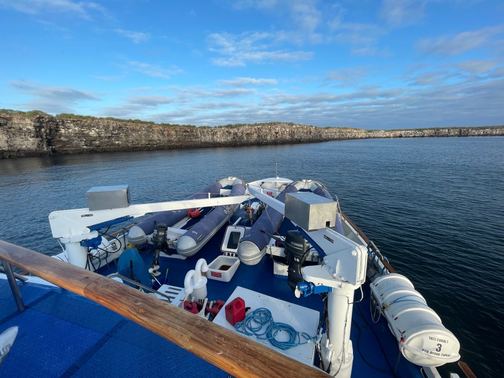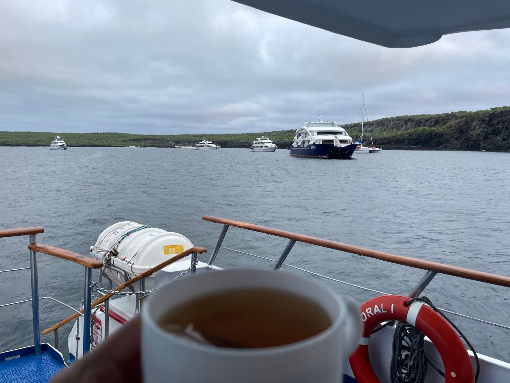 Opening the door this morning I was thrilled to see Genovesa Island before me. The yacht had traveled north east overnight, for approximately eight hours, to get us here. Anchor was now down and the yacht sitting in the sunken caldera of this volcanic island. I got ready quick and early, made my tea, and settled in for some morning quiet time.