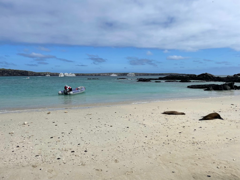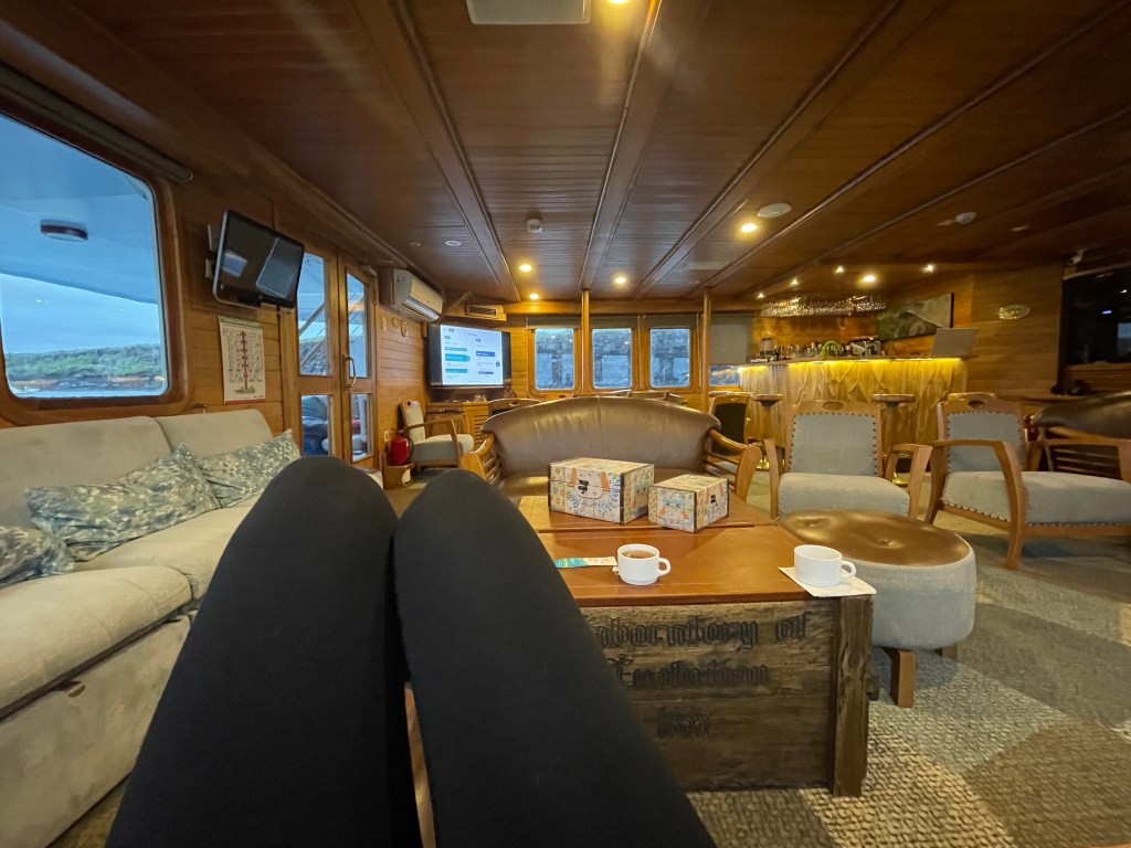After snorkeling it was back on the yacht for lunch and downtime before our visit to Bahia de Darwin (Darwin’s Bay). The timing of the island visits are very regulated by the National Park as no more than 200 people are allowed per day on each of the uninhabited islands and more than 100 each in the morning and afternoon. Every two years the National Park service reviews the itineraries of each of the 49 yachts that operates in the Galápagos and approves or adjusts their schedules to ensure the conservation of the islands. I LOVED learning this! One of my major complaints about Thailand had been out disgustingly overrun run with tourists their islands were, how much they were just getting decimated, so this was music to my ears.