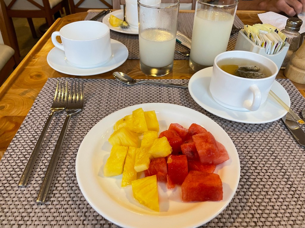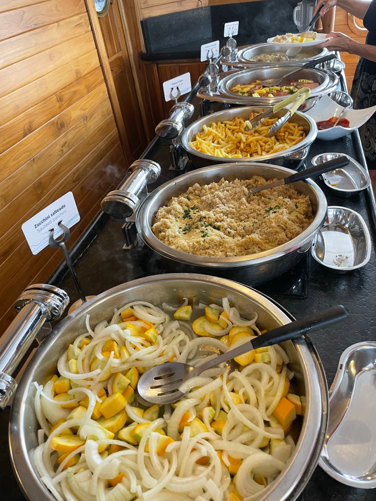 I thought the chicken wings on the breakfast buffet was an interesting option; alongside the fruit, granola, yogurt, oatmeal, bacon, sausage, and egg station. When Jaime, the head of the dining program, came around to offer juice I squealed with excitement when he offered guanabana as an option and he poured me two glasses.