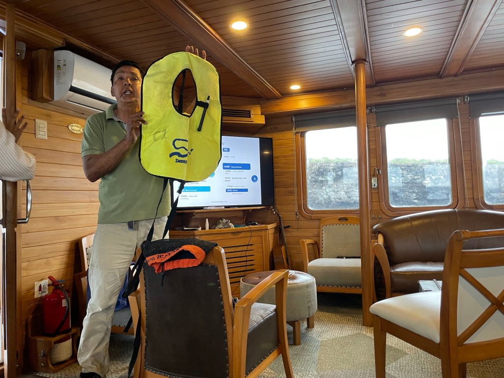 I slept terrible last night. Like super terrible. As the yacht moved through the night, crossing from the Southern Hemisphere up to the Northern, I moved as well; tossing and turning all night long. A musty smell, hot room, and headachy amongst the waves were determined to keep me awake. After getting nowhere trying to sleep for hours I found my travel fan and sleeping pills to be a savior. Nevertheless, I was still awake before the 6:45am wake up call and before the 7am breakfast time I was in the salon sipping my first cup of tea and reviewing the day’s itinerary that had been left on the screen. I realized that one of the perks of a trip like this was a lack of decision fatigue; everything was planned out and orchestrated like a well oiled machine so the passenger’s brains could just relax and absorb it all in.