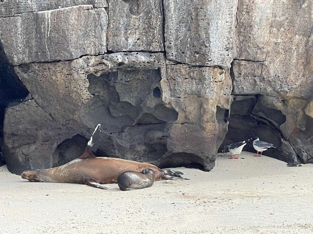 Baby sea lion was still on the sand with its mama. Alternating between nursing while she stroked his back and snuggling up tight against her. I was so sad when the guides said it was time to go and I had to leave this nurturing display.