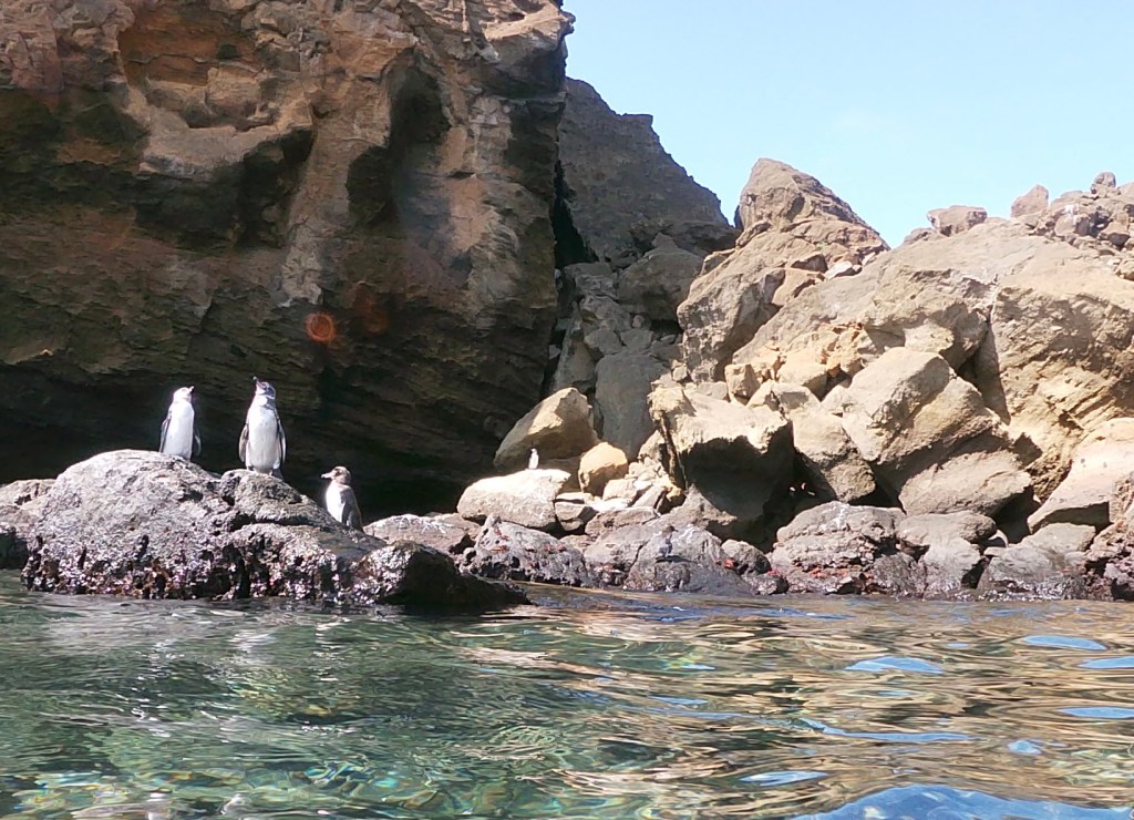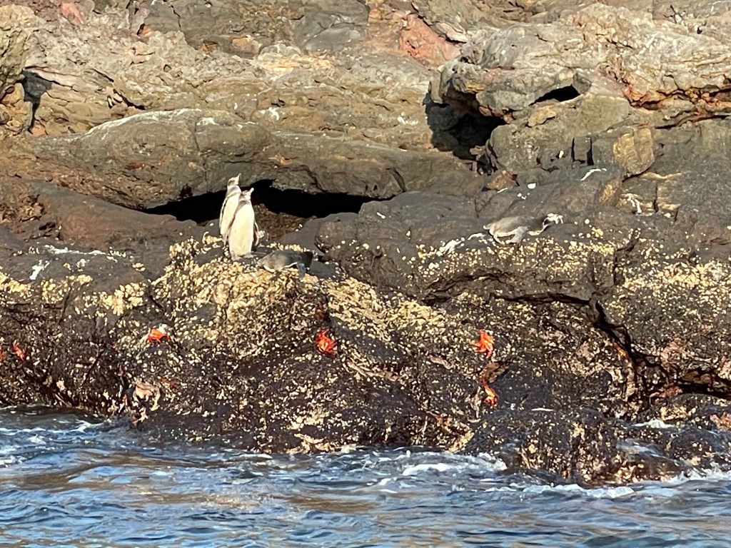 Something caught my eye making a splash in the water and a penguin had dove in right beside me. It darted past me, popped back up, and darted back down beneath; chasing after little fishes like a little torpedo. Andreas had told us that the penguins were shy but this little lad or lady didn’t seem to take too much notice of my presence; they were focused on their snack. I was snorkeling with penguins!!! Not just on land but IN THE WATER WITH ME!