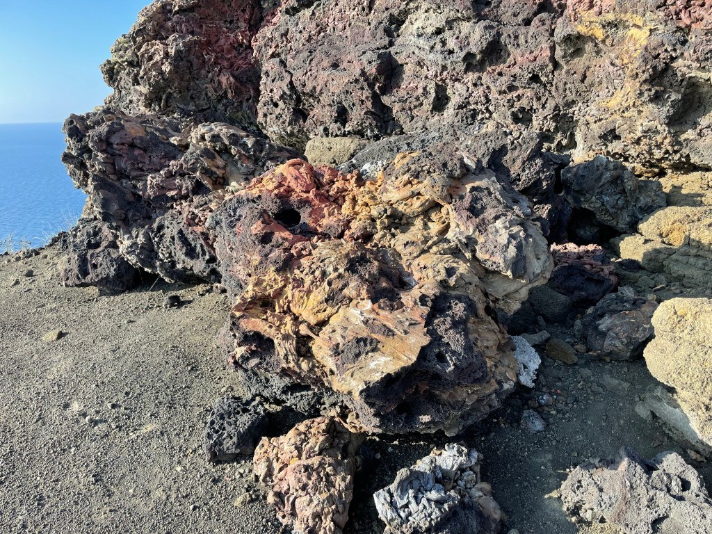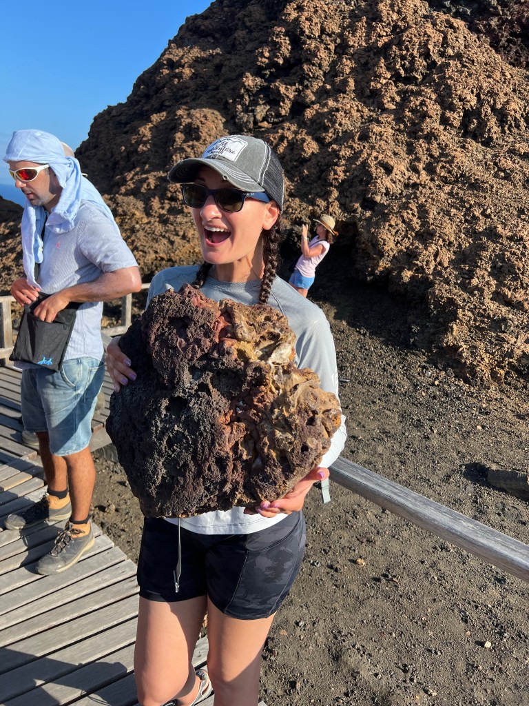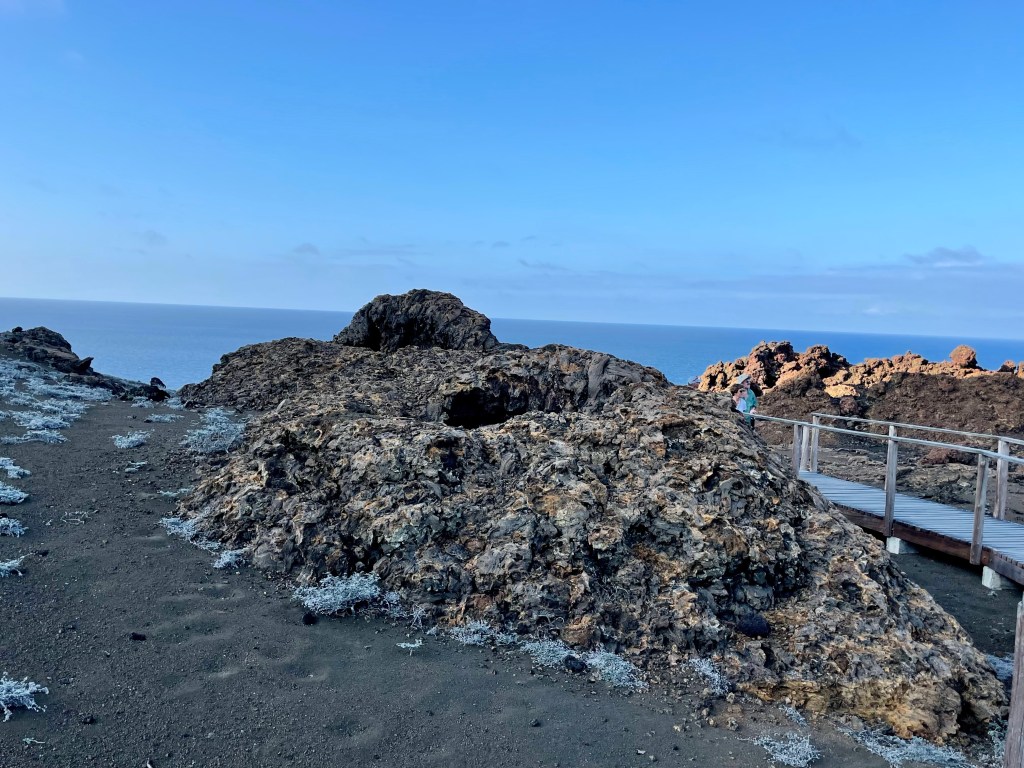 In the water a circle was clearly visible beneath the surface, this was a parasitic/spotter cone that was still submerged, just barely. Parasitic cones were visible all through the surrounding landscape of the tiny island. Andreas gave us a break from the steps and explained how hot spots work; the area between tectonic plates where the earth is the thinnest. The tectonic plates shift but the hot spots don’t; I have to admit I don’t quite understand that part and need to do some follow-up googling. The Galápagos and Hawaiian islands are prime examples of hot spots. If water was drained from the ocean eventually it would get to a point where a platform is reached that connects all the islands to one another. I wonder where are the other hot spots? Definitely more research to be done here.