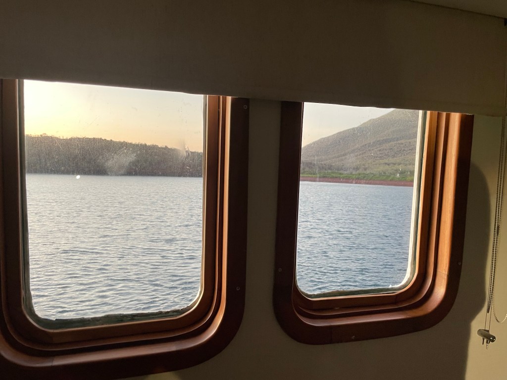 Lacking a fish option, today’s lunch wasn’t my favorite but it was still quite good. And I was hungry after the morning on the go! While the boat carried us from Rabida towards Bartolome I enjoyed the early afternoon, tucked into my corner, writing and chatting with my new friends.