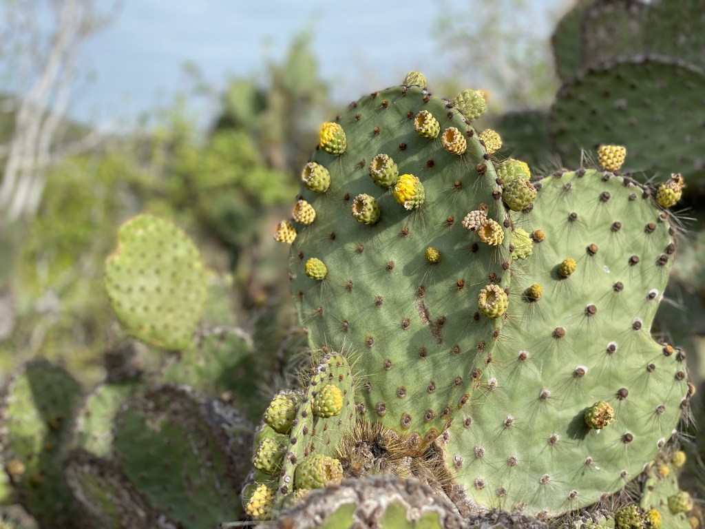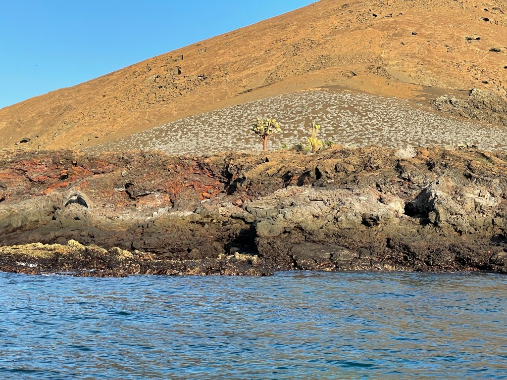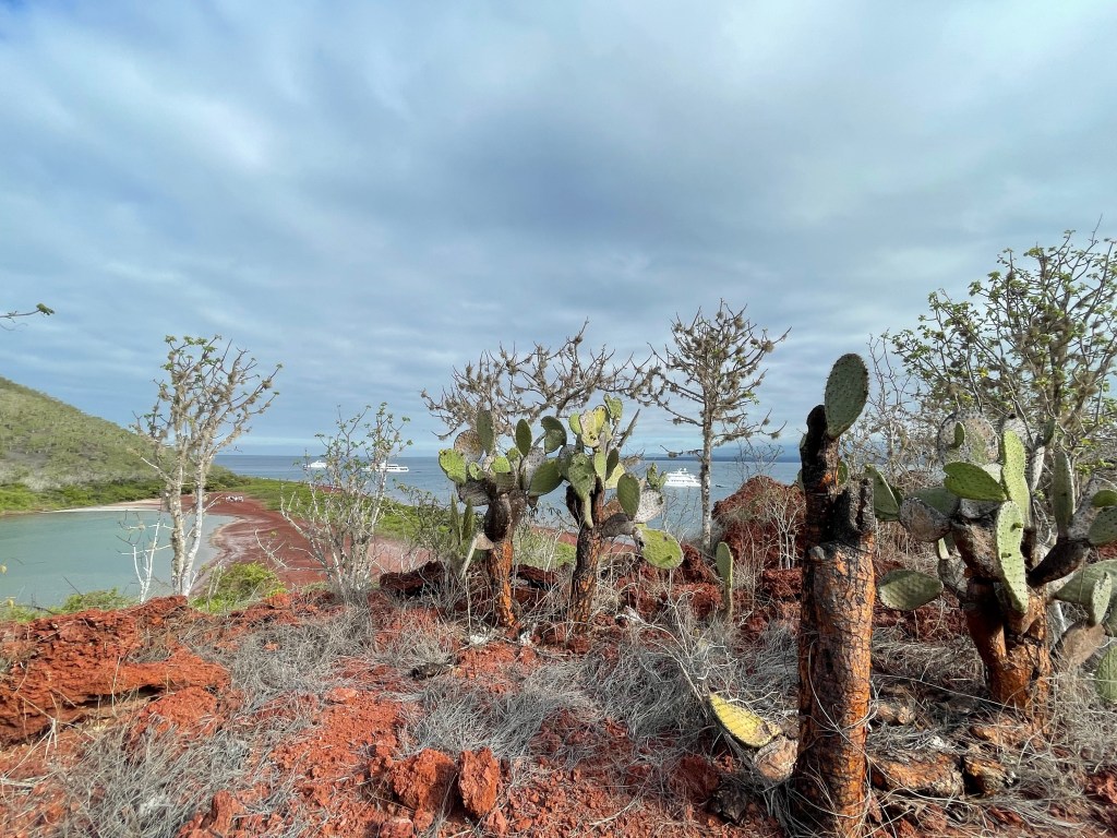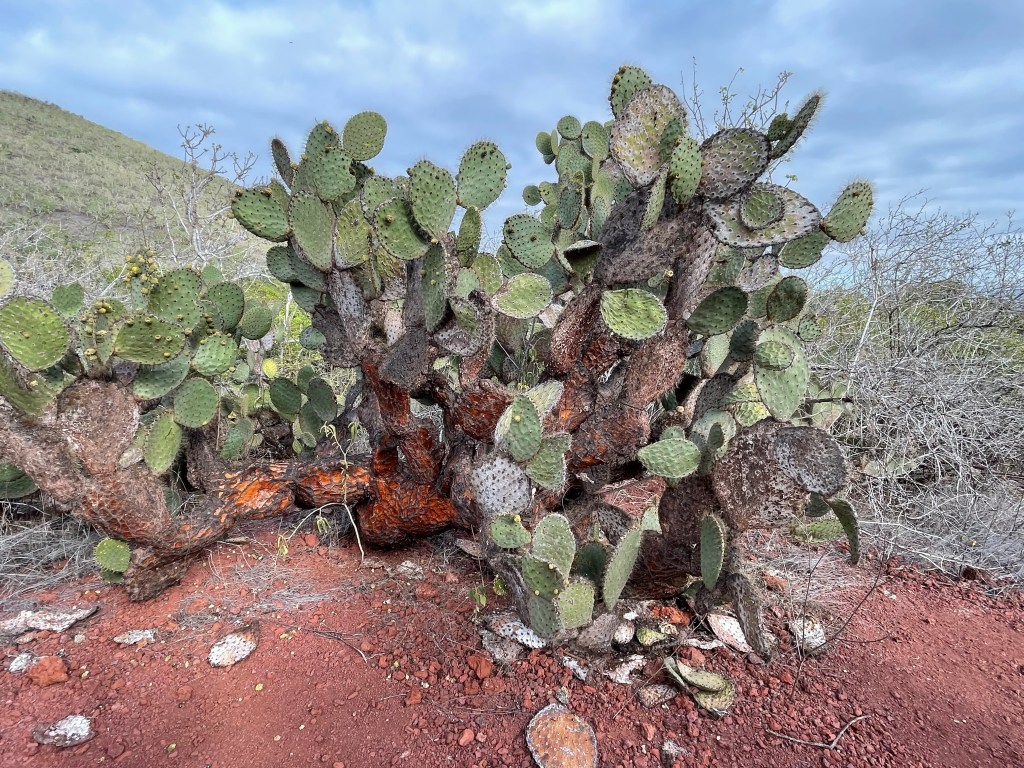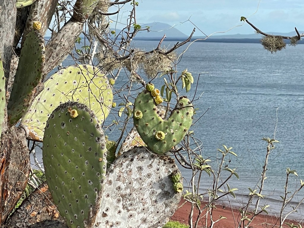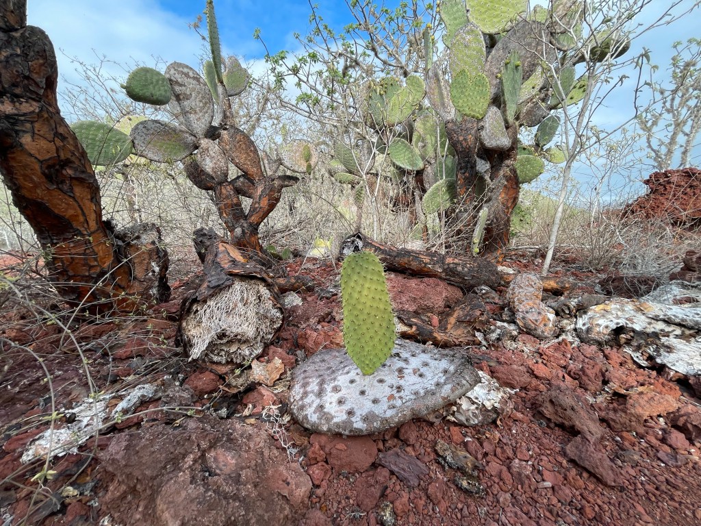 As we hiked I continued to learn so much. I don’t mind that I’m being repetitive here but I really love how much I am learning on this trip. The Western islands of the Galápagos archipelago, such as Rabida, were much younger than their Eastern counterparts. With Rabida’s youth there is more iron in the mineral content that oxidizes and reddens the sand. Since the cactus on Rabida have no predators, such as tortoises or land iguanas, the giant prickly pear cactus are not as giant, growing low to the ground, and the the spines not as sharp. I dunno though, I gently petted a row of spines and they still seemed pretty unpleasant. I spied more heart shaped cactus leaves; I love you too Galápagos!