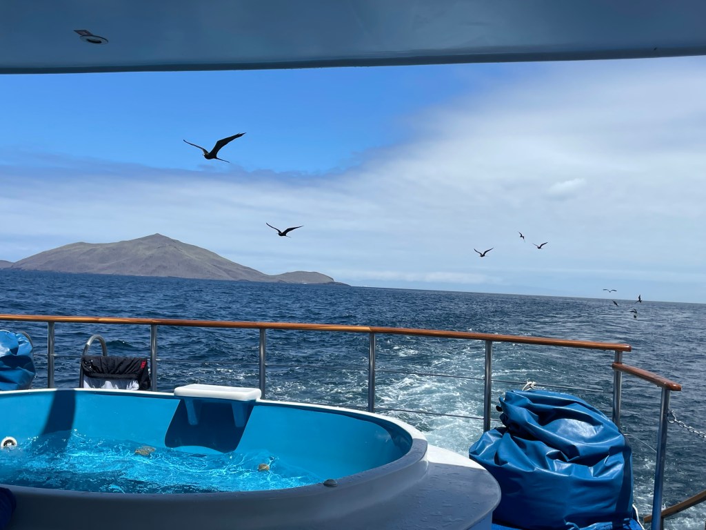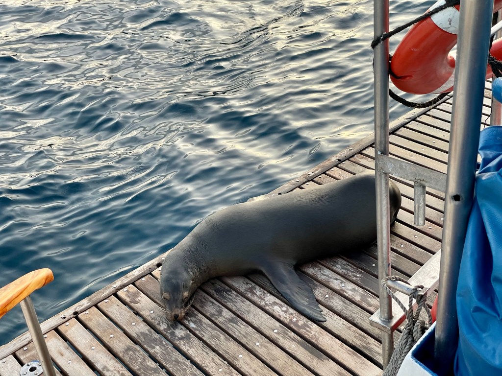 This is the last night on the yacht and I went to the bow of the boat for a few minutes of solitude and reflection, looking back on Bartolome and its famed Pinnacle Rock that I swam so humbly around. I hadn’t known exactly what to expect from this little cruise but it has easily exceeded the expectations I did have. Walking back to the stern of the yacht I found a sea lion friend on board who was also relishing in the yacht life.
