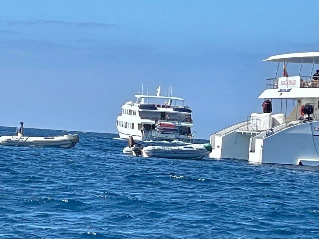 Eventually the panga made it to the beach for our wet landing. It was time to suit up and get in that water. Not purposefully trying to hang back this time, just taking my time to soak in the experience as I geared up, I was the last one into the water again. The pangas from Coral II arrived before I had gotten off the beach and I was again struck at the difference in clientele between the boats. Coral I and II are “twin” yachts that travel in tandem but the guests don’t actually interact; occasionally staff will panga between the boats but I didn’t even see that often. At the arrival lunch our first day everyone had easily summed up that Coral I seemed like the fun boat and every time any of us caught glimpses of the Coral II folks it was confirmed. Coral II was a MUCH older crowd, like I’m not even sure some of them should be allowed out unsupervised. I wonder if they are a senior tour group of some sort as even from the initial airport meet-up they all seemed very familiar with each other.