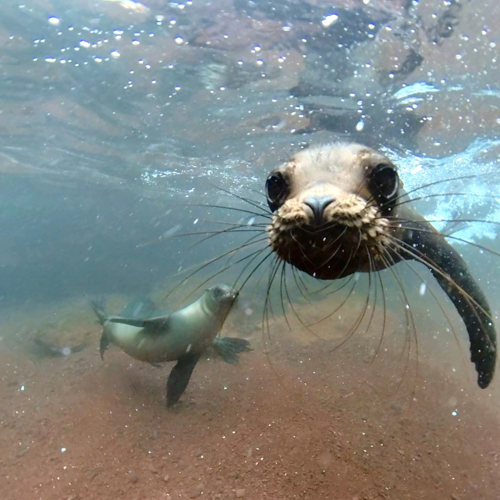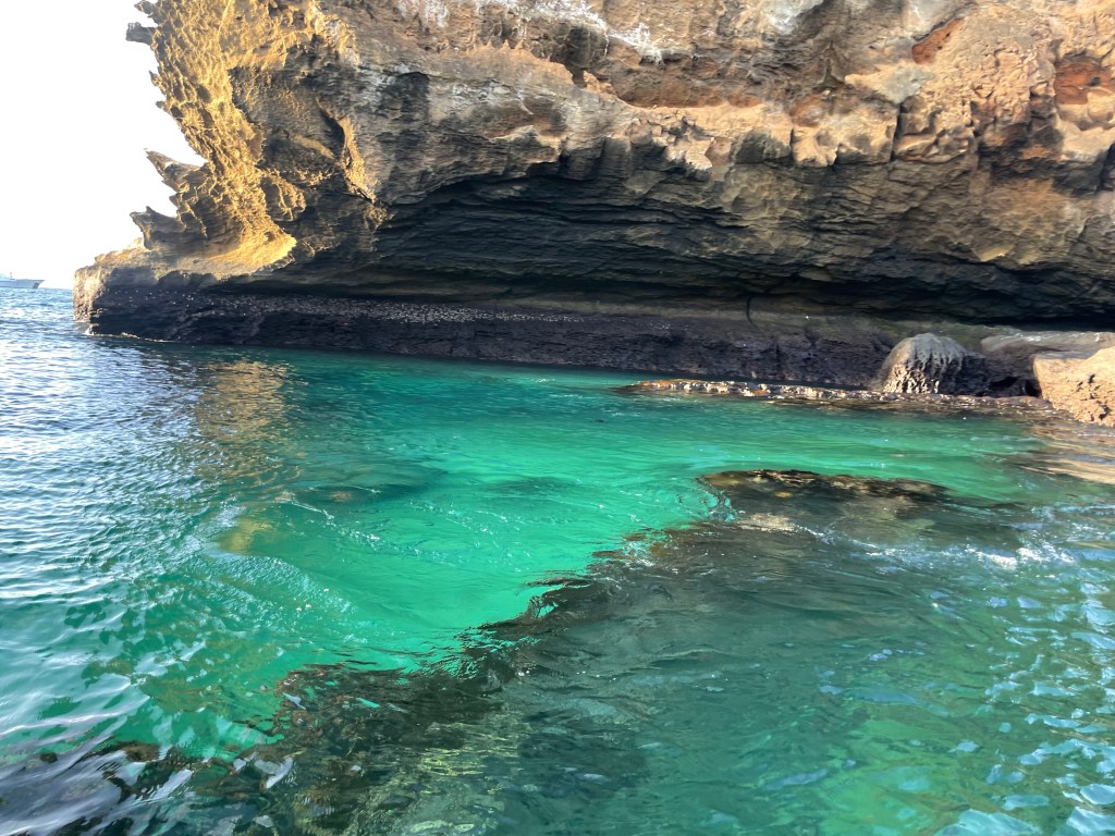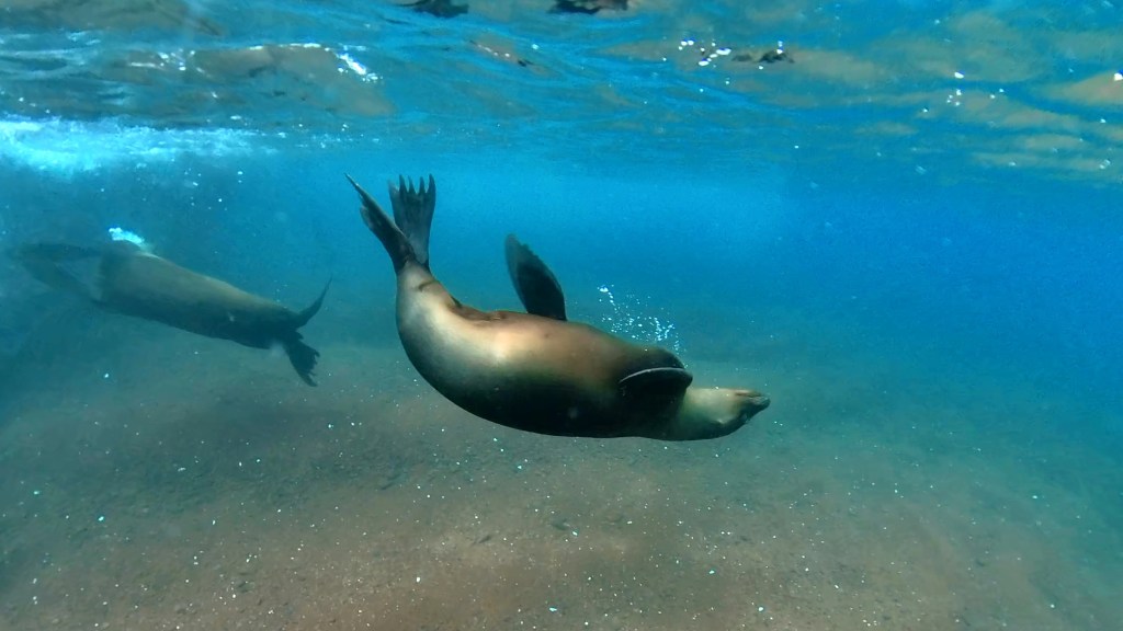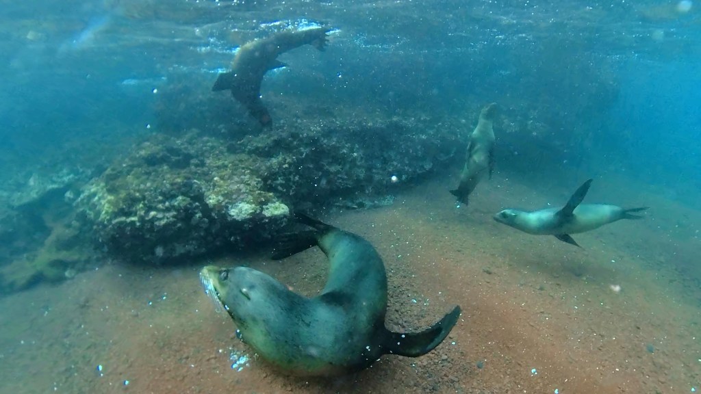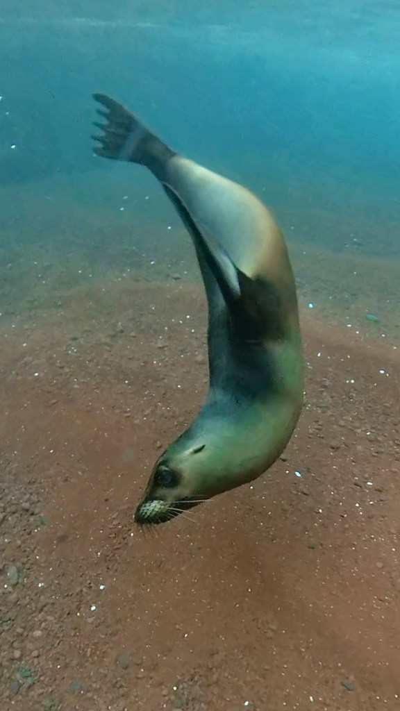 Camilo’s dad Andreas brought the camera back just as I was getting ready to start my snorkeling. He apologized that the videos are probably all shaky and not of much and I was clear that I did not care one bit what the videos looked like, all that mattered was that he had fun. A bonus to staying back at first was that the majority of the snorkelers were way ahead by this point so I had the water mostly to myself. Without worry of running into anyone or being ran into or trying to jockey for position to see something interesting. It was peaceful floating along by myself, the world quiet around me. I twirled with a mama and baby sea lion and another sea lion friend as they joined me in the water. They came closer and I kept moving away, staying very conscious that I wanted to make sure to give them their space and not make any of them feel trapped between me and the cliff side. I also wasn’t sure if mama would get protective of her sweet little baby, who at times pushed itself against her to nurse underwater. I was glad I had my underwater camera with me though Kyra got way better footage on her GoPro of one sea lion actually biting her camera! I need to figure out the editing of the 360 camera videos before I’ll have my own video footage ready to share.