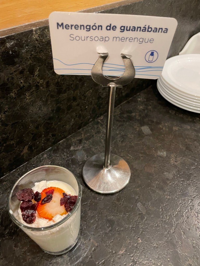 I enjoyed my usual combo of quiet writing and socializing time before another fabulous dinner. Each seat had been set with a creamy mushroom soup and whole red snapper was being carved fresh. In the dining room Sofia and Camilo asked if they could see the 360 videos from my camera. I promised them that after dinner they certainly could. The star of dinner was the desert: Merengon de Guanabana! Guanabana meringue! Two things I love so much, combined into one! I had to pick nasty little raisins off the top but the rest of it was divine. I was so excited I dug in before I took a picture to remember it by.