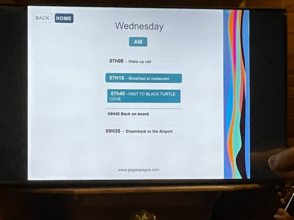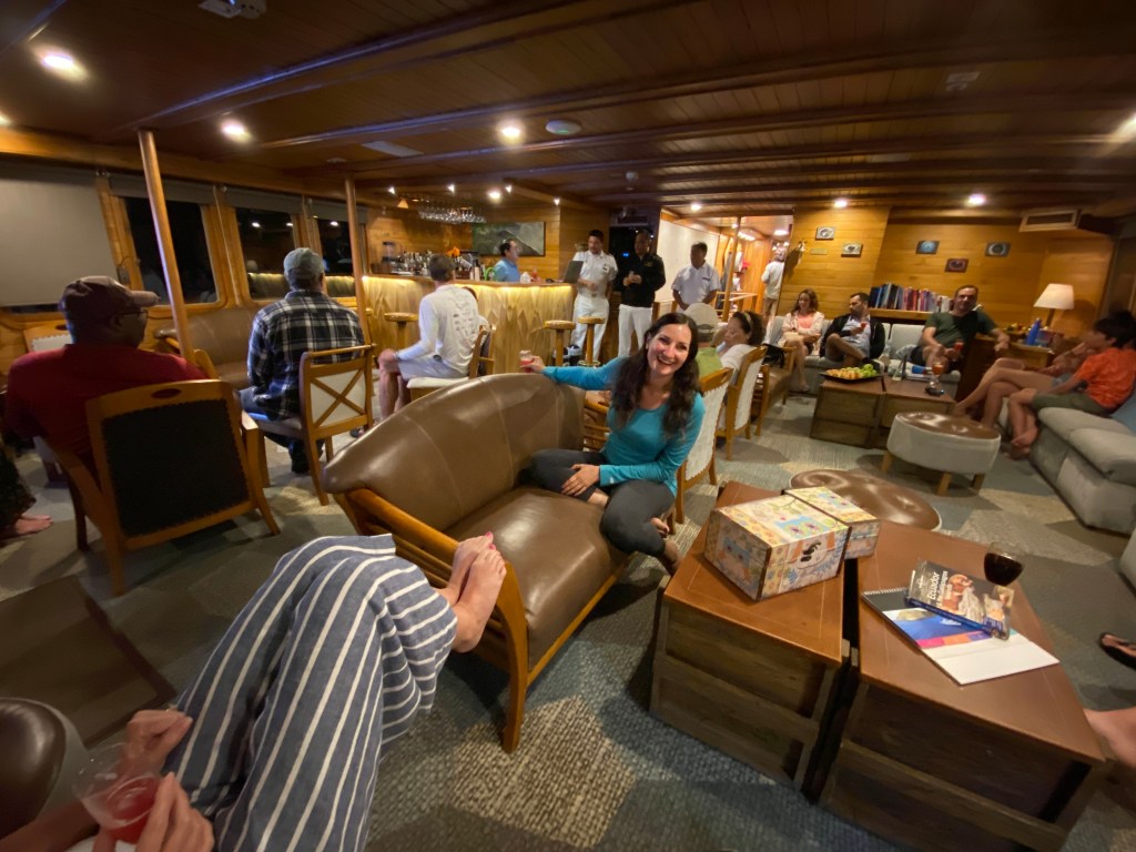 After the toast, Billy reviewed the itinerary for tomorrow, departure day for most of us. It will be a tight morning with a visit to Black Turtle Cove before we are deposited back at Baltra Island and our yacht time is over. That means packing up tonight. They also provided us with information on customary tipping for the yachts of the Galápagos. It was exactly aligned with what I had seen in my research and seemed ridiculously low at $10/day/guide and $20/day for the crew to split. The service this first class ship provided deserved much more than that. Most of us hung out in the lounge for a little while chatting and reflecting on the trip but by 9pm everyone disbursed to go pack up. I’ve loved this cruise and would love to do more but I’m ready to start wrapping up the trip and head home soon.