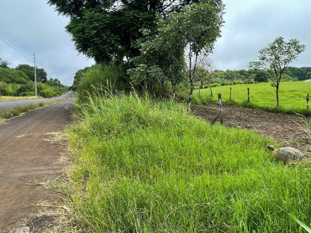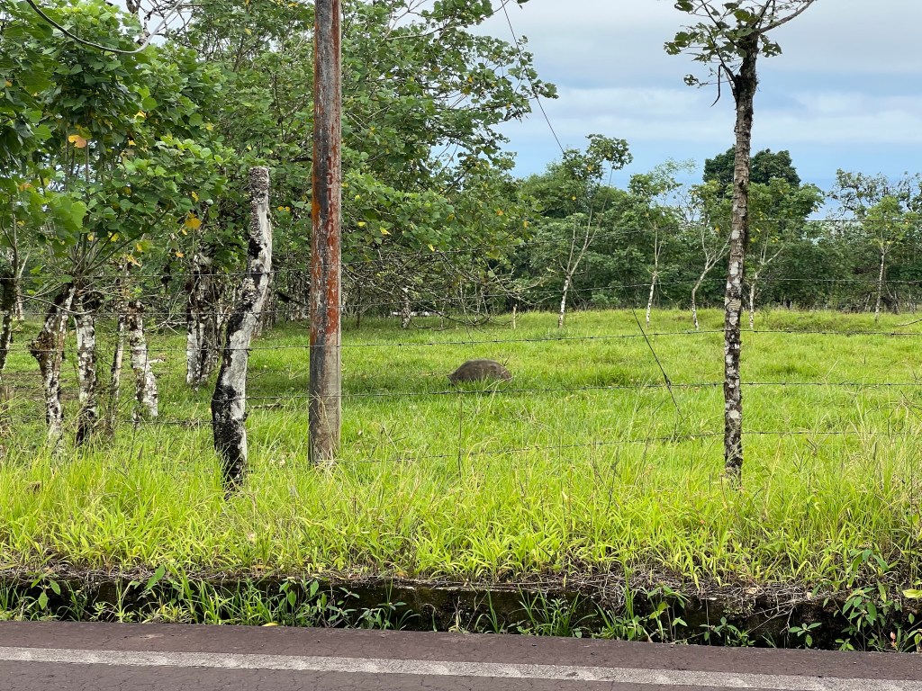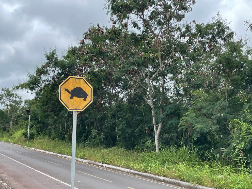 Our driver, Wilson, was there right on time with a friendly and helpful demeanor. He spoke decent English and we were able to communicate easily. He told us that he thinks Spanish is easier to learn than English since Spanish words are pronounced as they are written, and English not so much. Once on the main road, heading the 40ish minutes across the island to the ferry, we discussed our amusement at the tortoise crossing signs. Hearing us confirm with each other that I had gotten a picture of one from the bus, Wilson pulled the truck over and stopped on the shoulder so we could get out and make sure we had a nice clear picture of the caution signs.