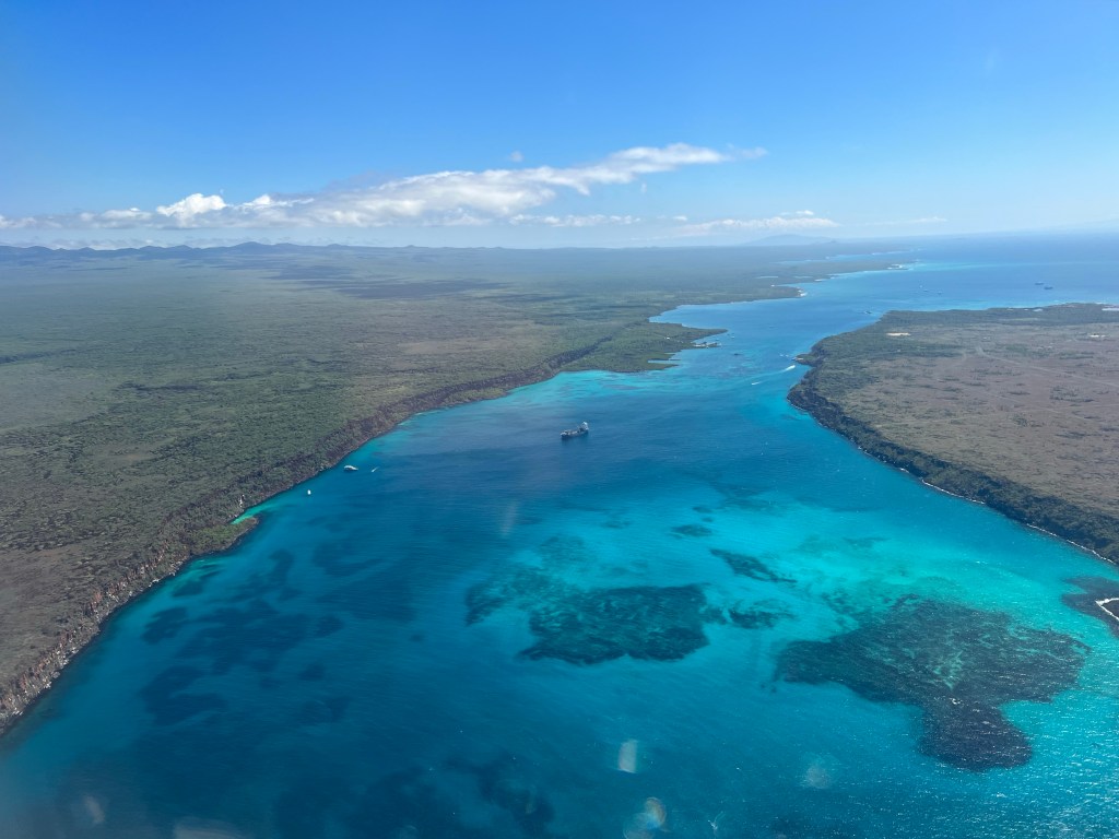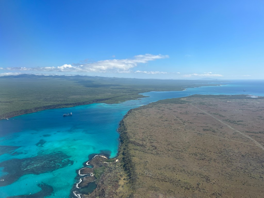 The flight was sparsely booked and we each ended up getting our own row so we each had a coveted window seat to watch the islands slip away behind us. I noted more of the remains of the old military base as the plane climbed over Baltra and gazed wistfully on the opulent ferry channel. I sunk into the calm of sitting in my own little corner on the plane with the empty row beside me and having some quiet alone time to digest the amazing experience this adventure has brought me.