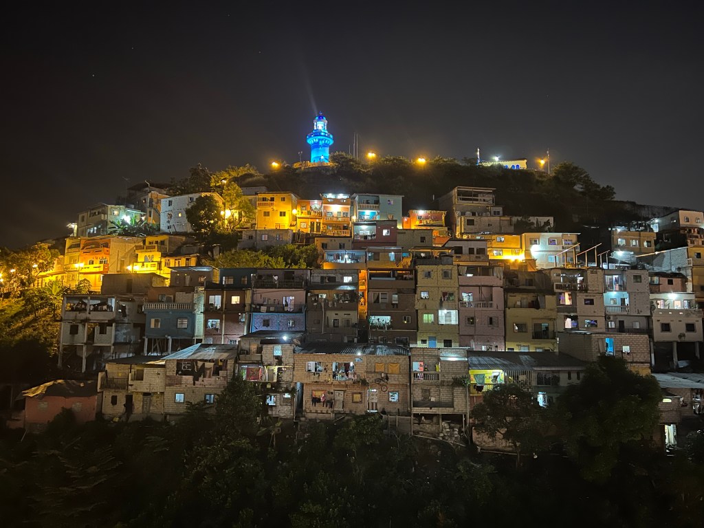 Turning off the closed road onto a side street we were near the hill where the two men stopped me from walking last week, telling me it was dangerous and I could not go there. It was clear we were tourists and our driver pointed to the hill, “Muy muy peligroso! No vayas!” He even pulled up google translate on his phone to make it clear, “Don’t go there, very very dangerous. They come down and rob everyone on that hill.” I was again shook but even more so thankful. I was really glad Kyra and Paul were also hearing it from him. Having only seen the nicer side of Guayaquil so far I don’t know that they’ve taken me seriously about how unsafe some parts are.