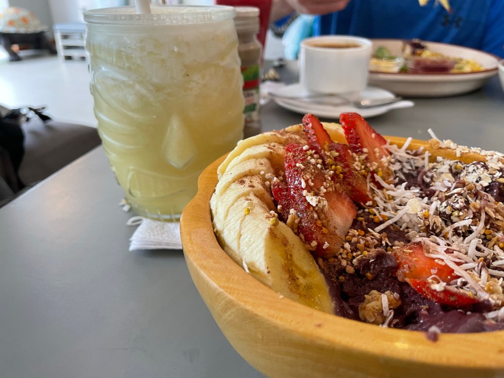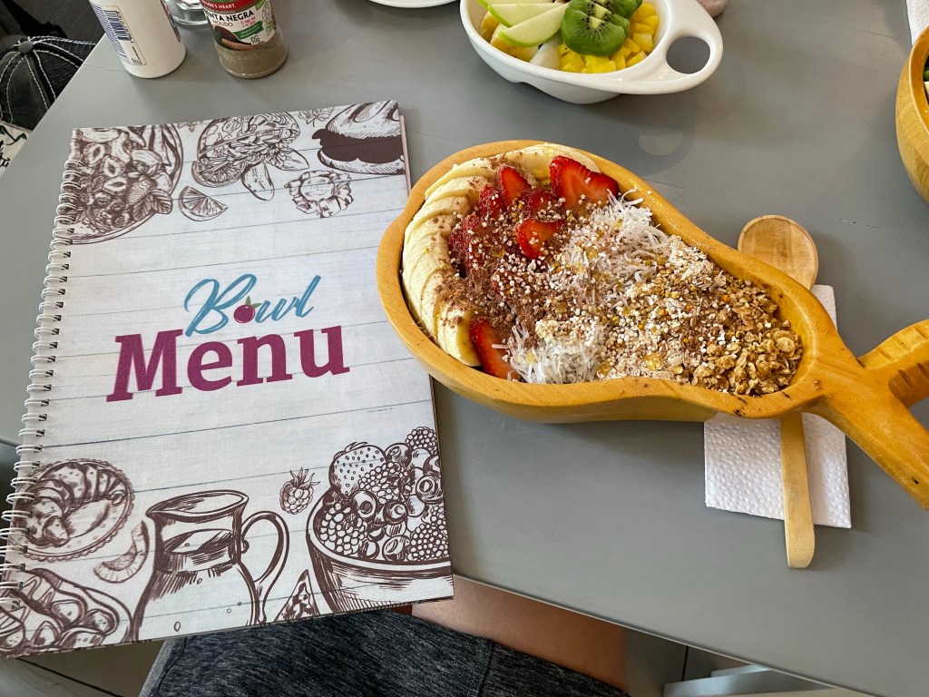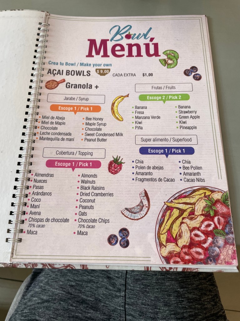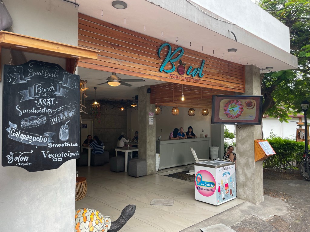 I had researched breakfast spots so knew where we were headed but was pleasantly surprised and nostalgic when I realized we were walking by El Muelle de Darwin; the restaurant where we had lunch our first day meeting our Coral I companions! Our destination was right next door; Bowl Açaí & Coffee House.