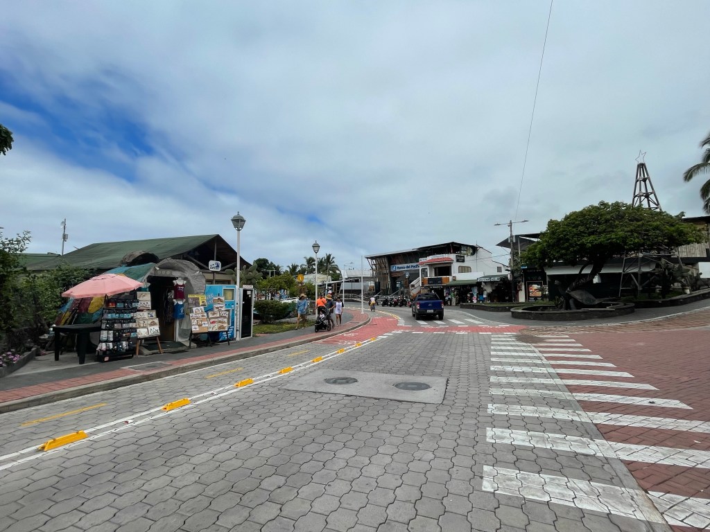 We were all ready to go by 9am which would give us a little under 2 hours to get breakfast and wrap up in Puerto Ayora before the taxi Donna arranged for us would whisk us away. Since check-out time on the unit was 9:30am Donna had offered to store our luggage in the office. However, she wasn’t in said office when we showed up ready to drop our bags. I pushed the ringer on the wall, not realizing there was a planted cactus DIRECTLY UNDERNEATH the damn buzzer and accidentally swiped my thumb against it; becoming a human pin cushion. With a few select words I started pulling quill after quill out of my thumb as the door finally opened. Donna’s assistant who had come down to let us in seemed oblivious as I dug in my bag for tweezers and tried to pull out the remaining quills; it seems like I’ll be bringing a couple home with me.