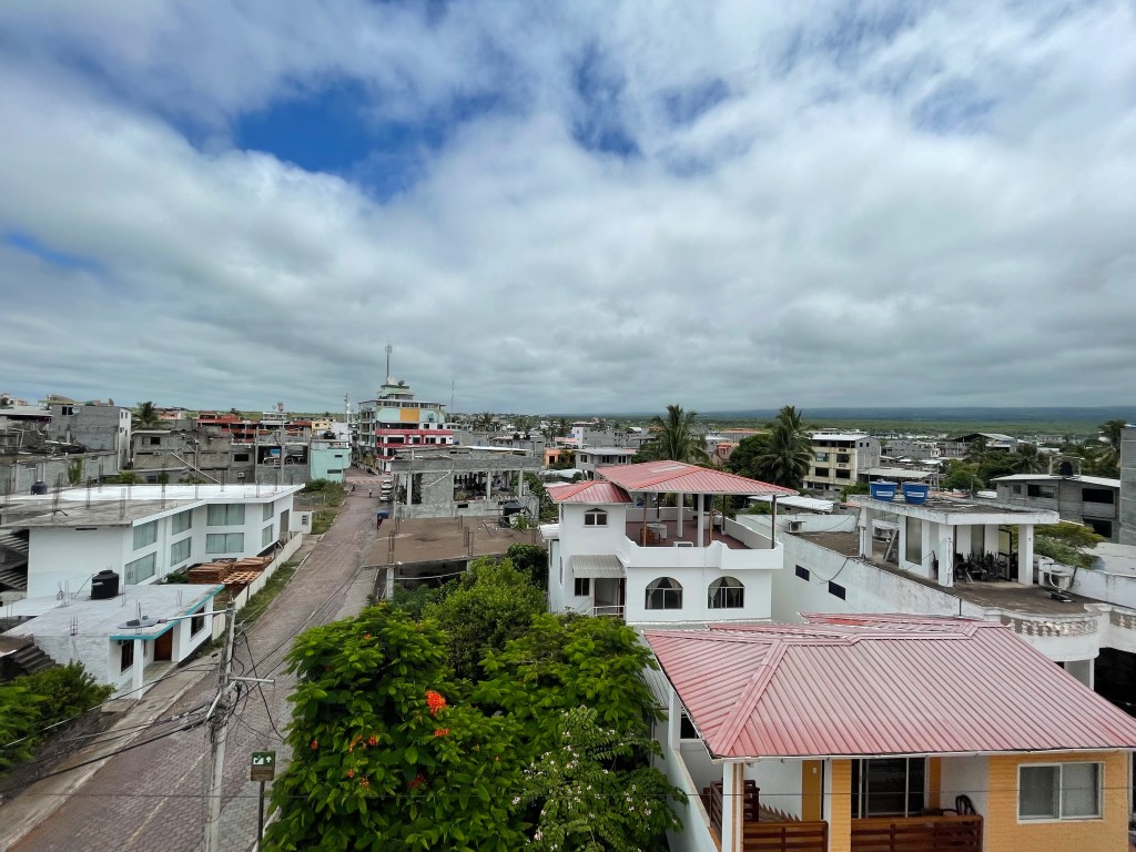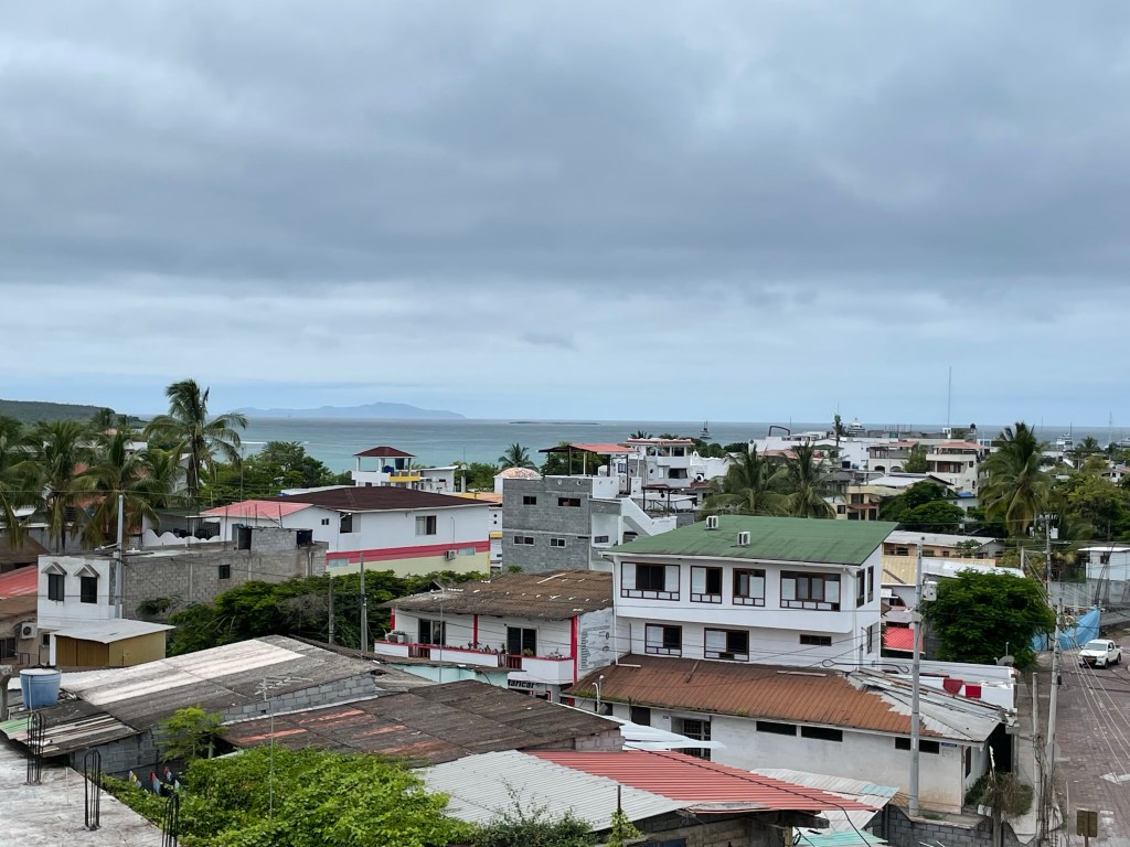 We made it back to the AirBnB building with a few minutes to spare and had time to check out the “Social Terrace” about six floors up. I am soooo glad our unit had been on ground floor so we didn’t have to climb these stairs with luggage! The views of the island from the terrace were outstanding and a great way to end our time in Puerto Ayora.